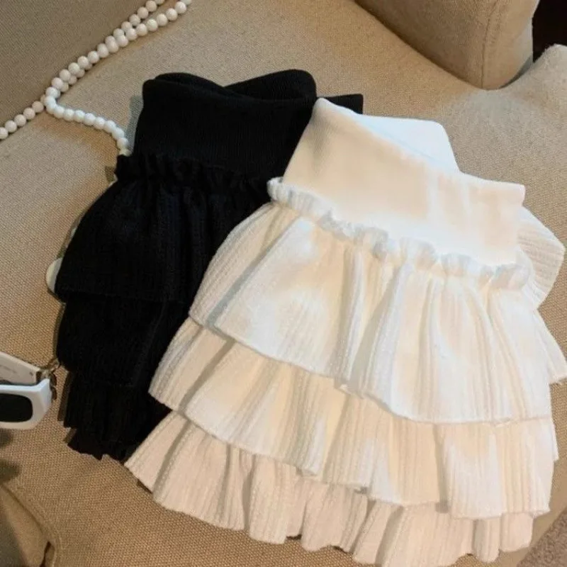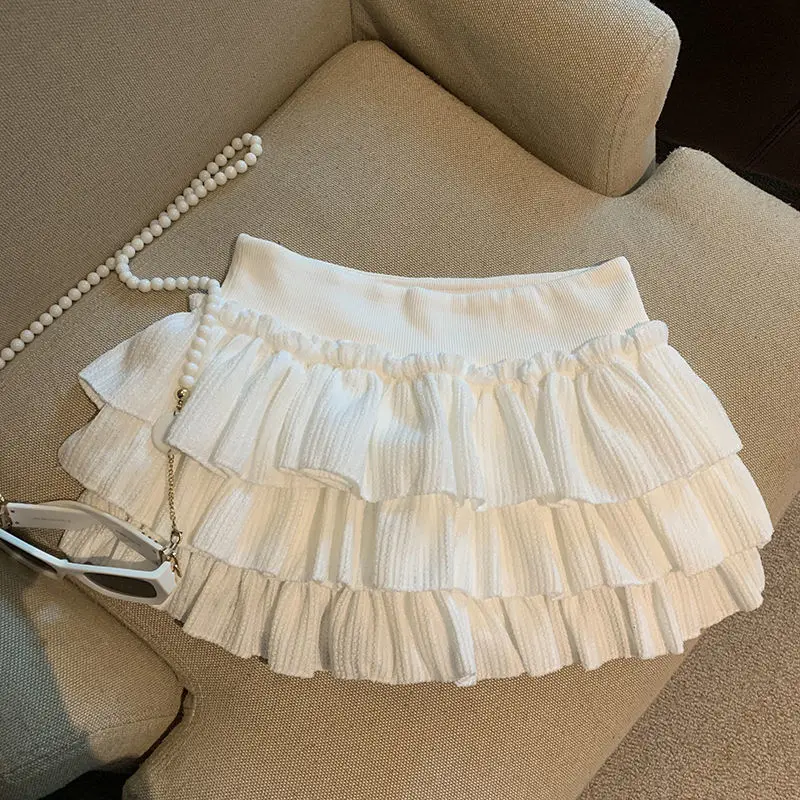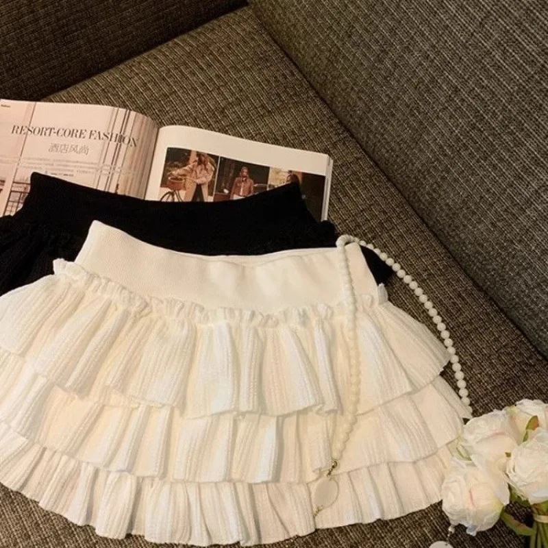 Gonne da donna dolci con torta gonfia Moda coreana Minigonna con volant increspato Campus Harajuku Gonna solida in vita elastica versatile casual