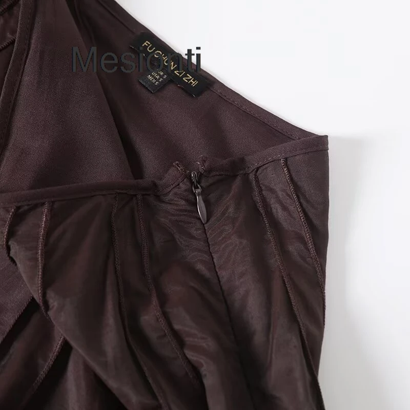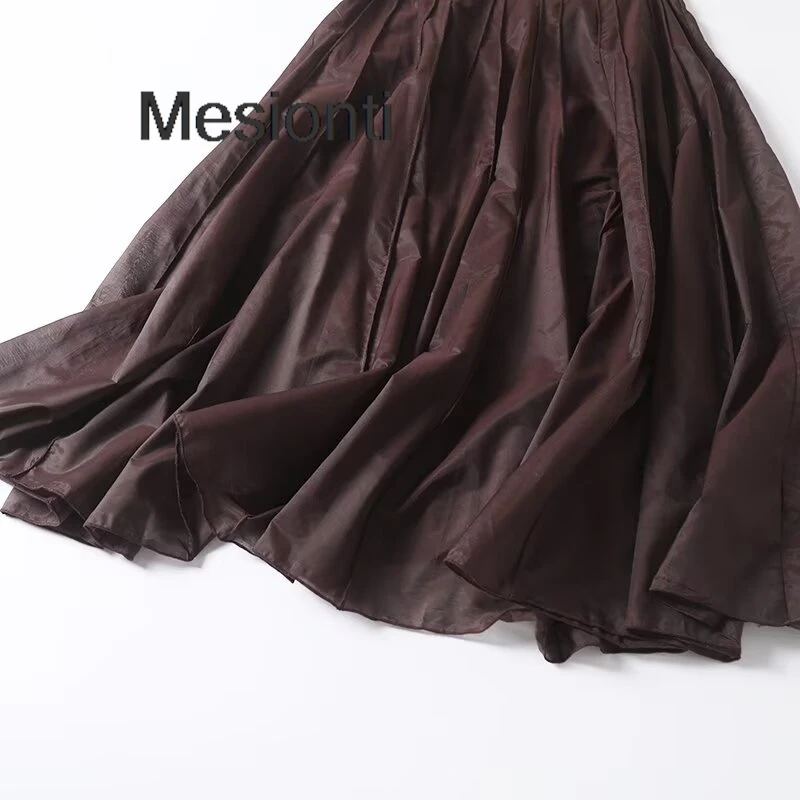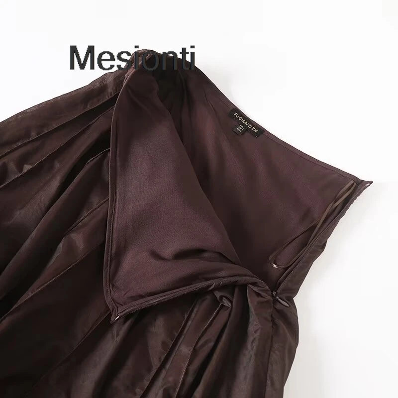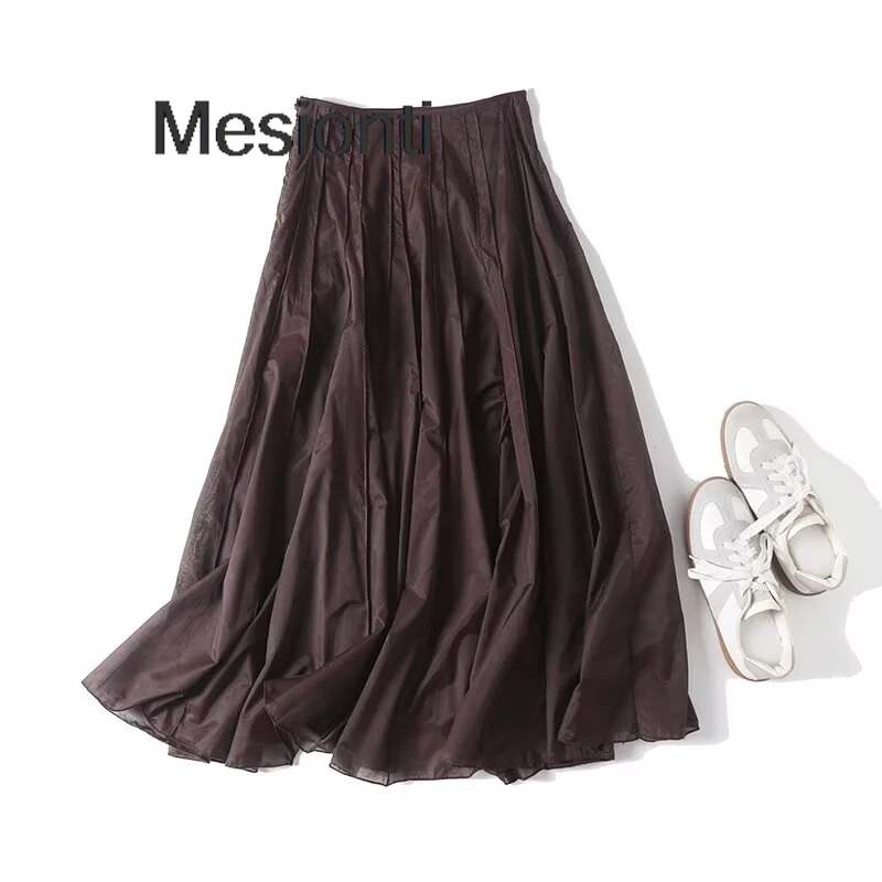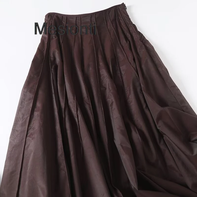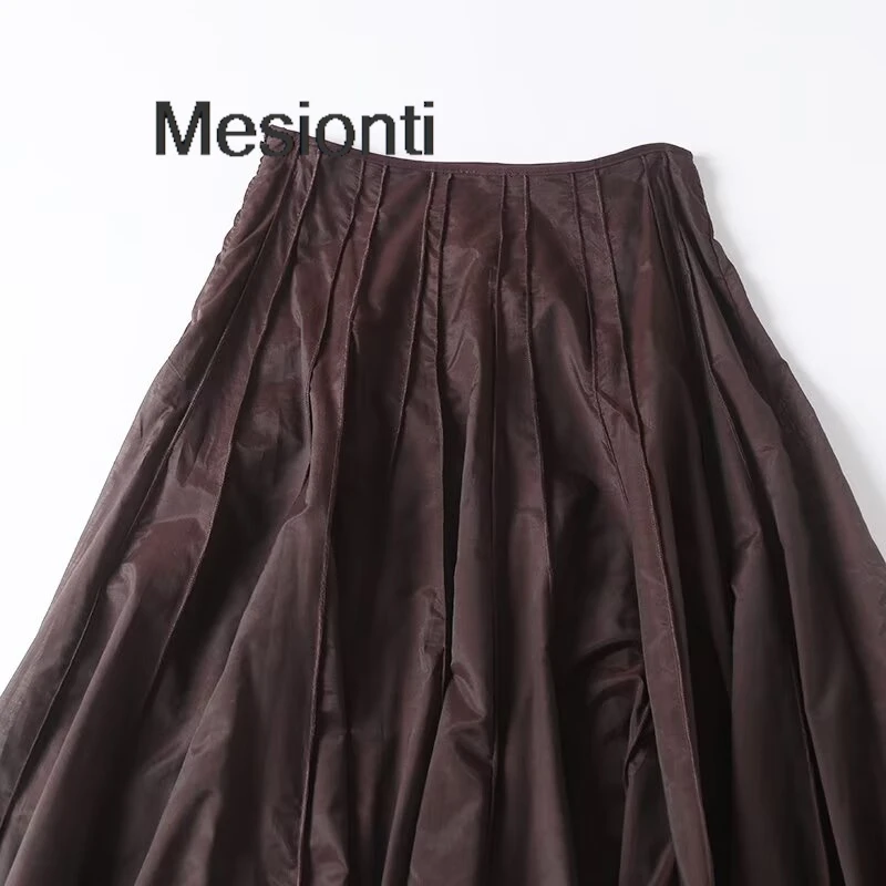 Gonne da donna eleganti a vita alta Autunno a strati da spiaggia di lusso Y2k A-line Midi Gonna marrone femminile in filato vintage
