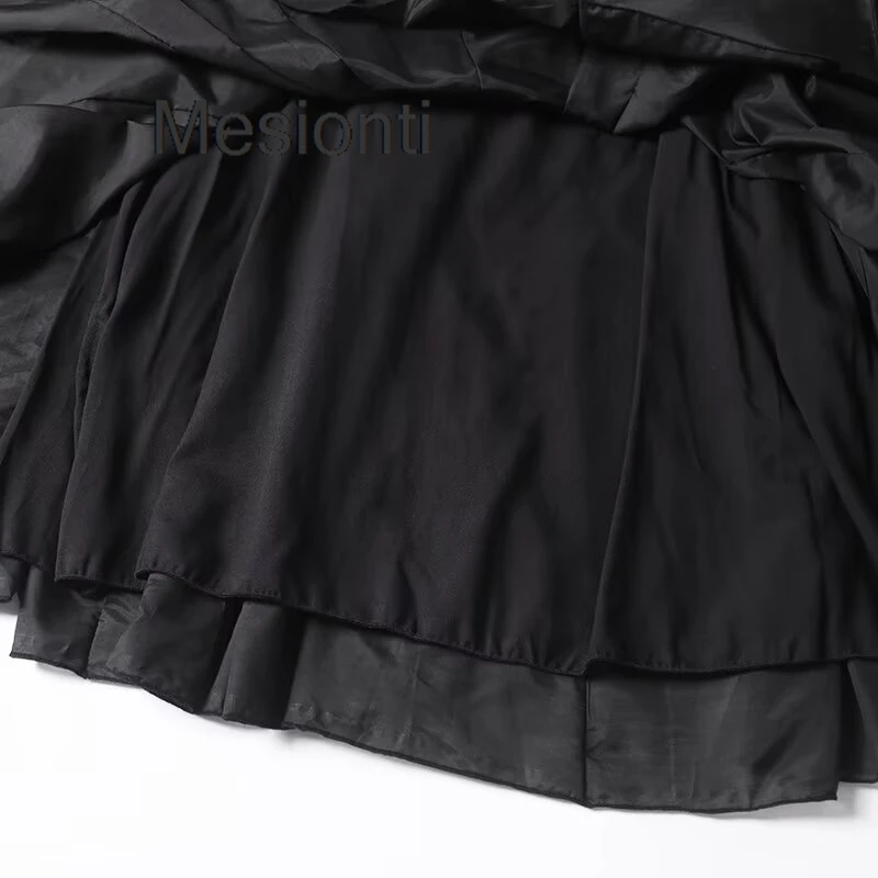 Abiti da donna a maniche lunghe autunnali con avvolgenti sui fianchi Abito da festa vuoto patchwork in pizzo nero Abito attillato a vita alta con scollo a barchetta