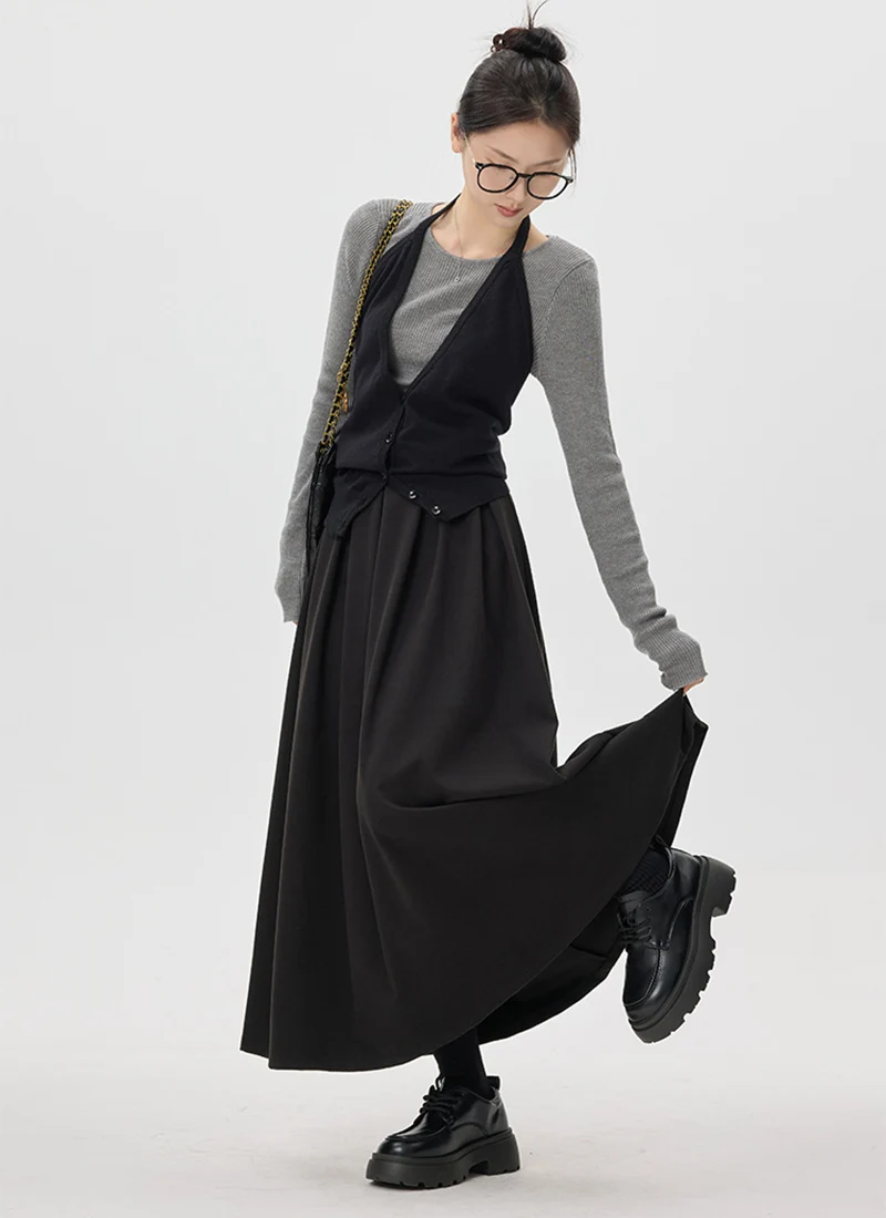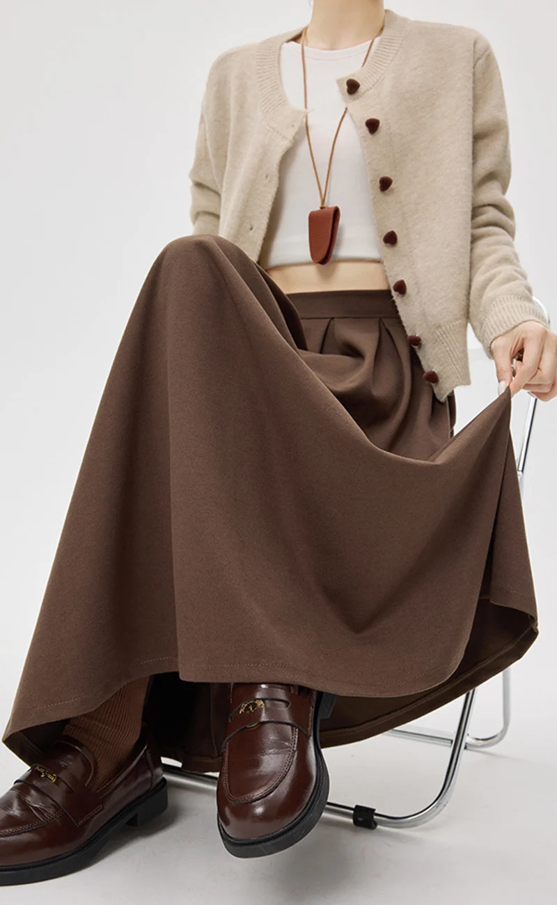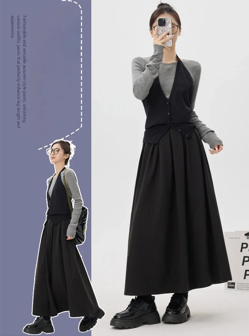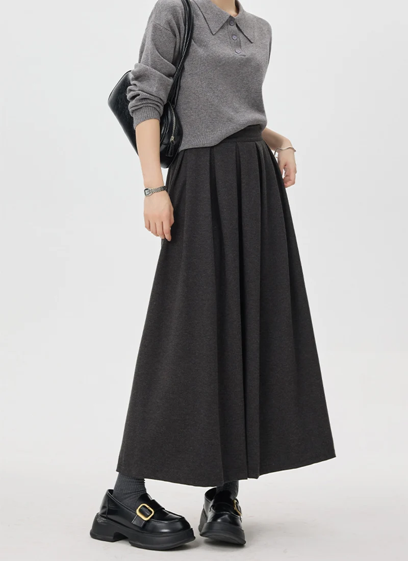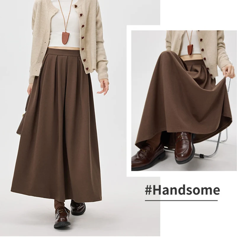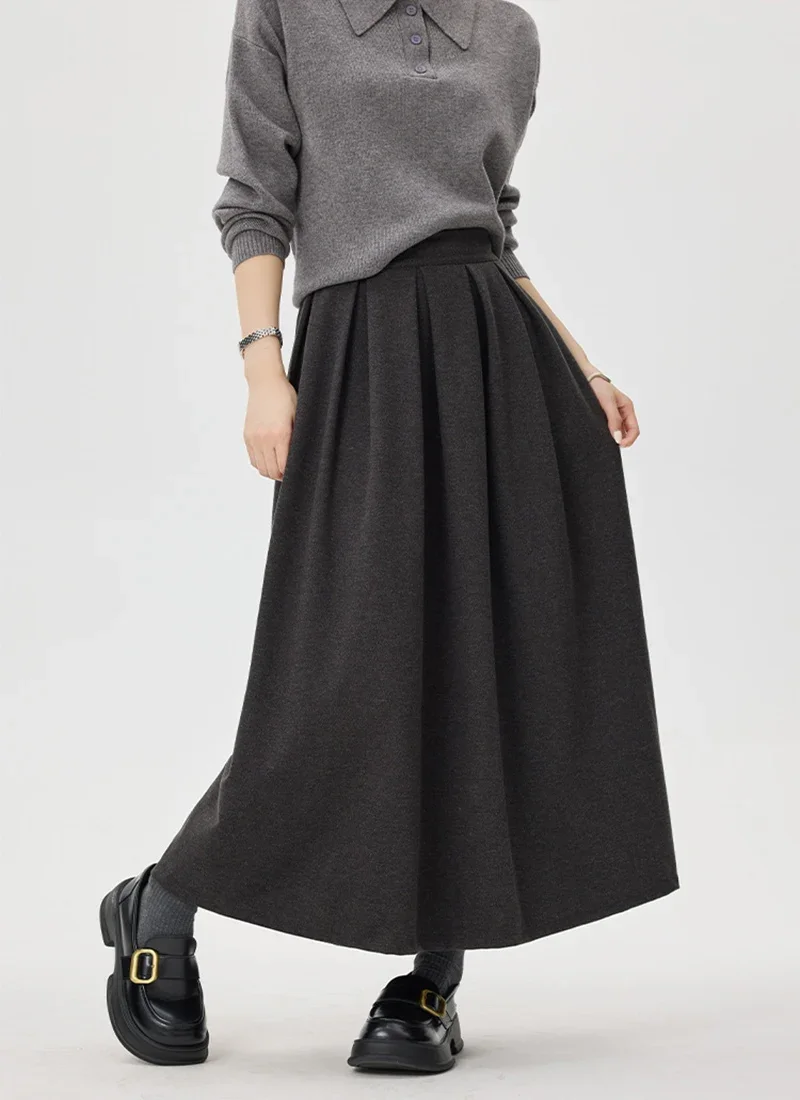 Gonne lunghe a pieghe di alta qualità per donna Autunno Inverno Gonna a trapezio coreana in lana a vita alta da donna Gonne longuette retrò eleganti