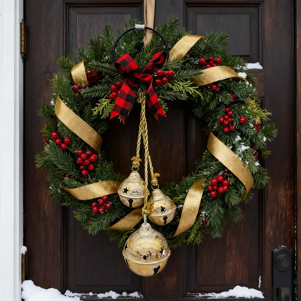 Grande campana dorata da appendere, elegante albero di Natale lucido e decorazione per porta per centrotavola da tavolo di casa, regalo di festa per la famiglia