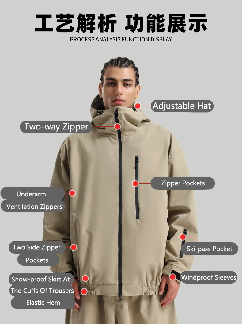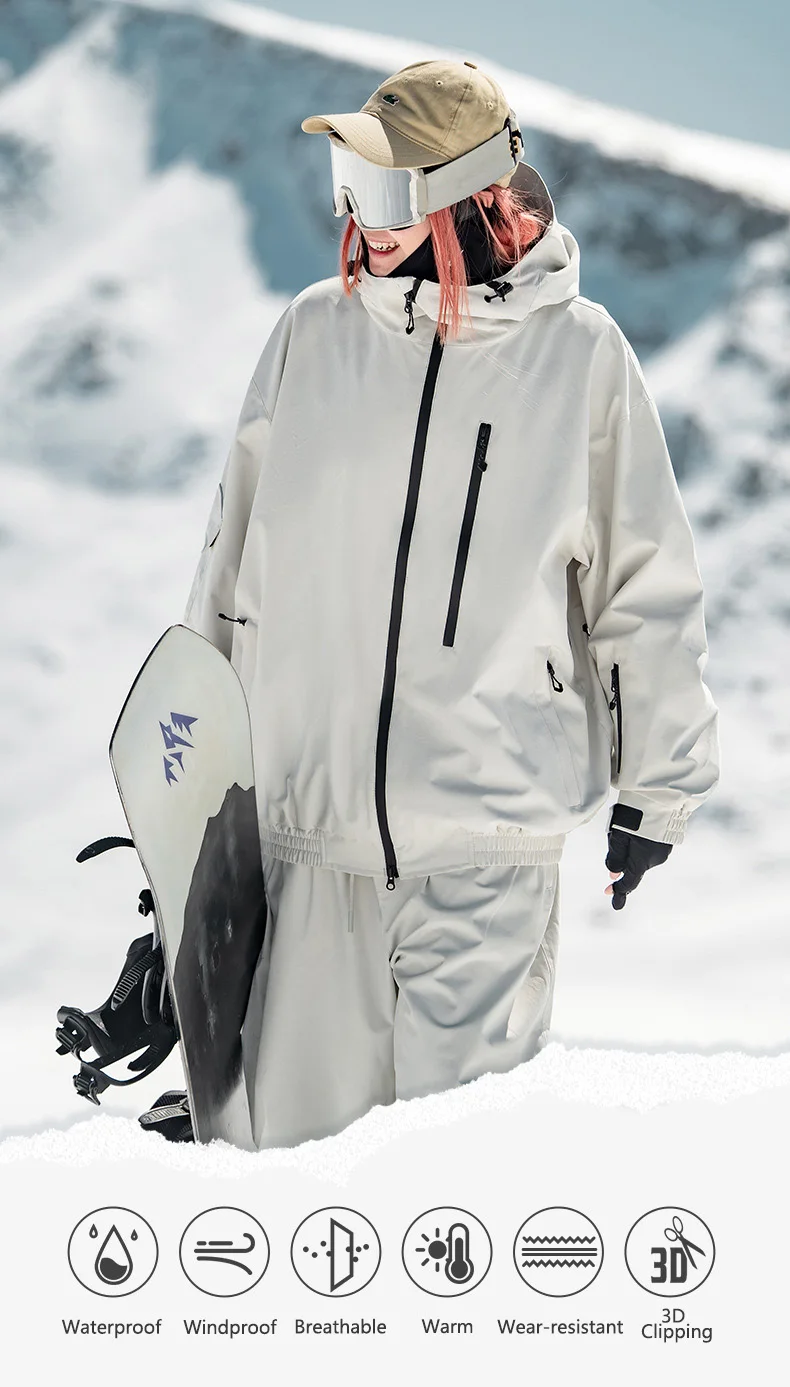 Gsou Snow Giacca da snowboard da uomo e da donna – Abbigliamento da sci impermeabile, Cappotto invernale foderato in pile traspirante, Stile abbigliamento da lavoro dalla vestibilità ampia