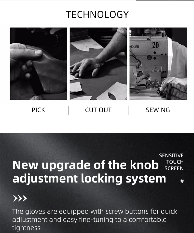 -Materiale: pelle di capra, microfibra conduttiva, spugna, fibra di carbonio