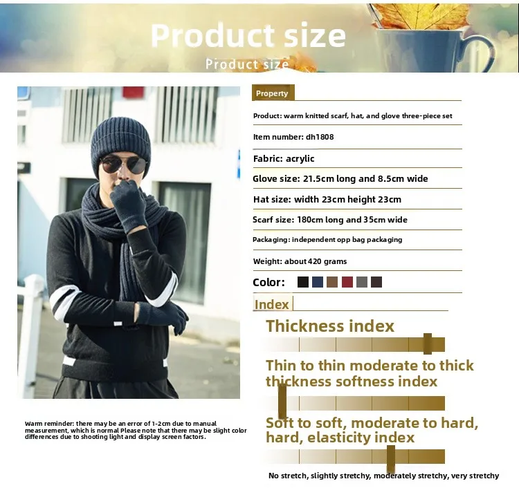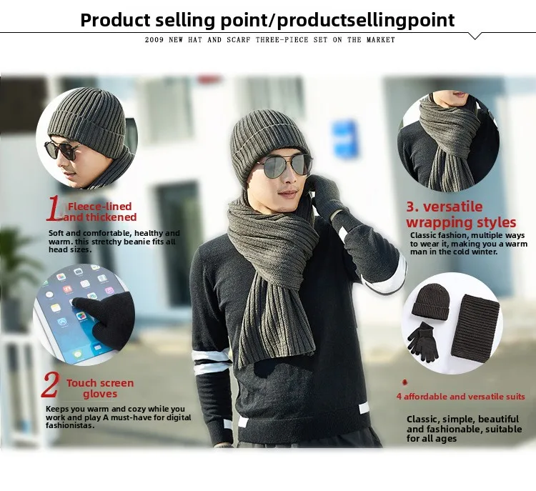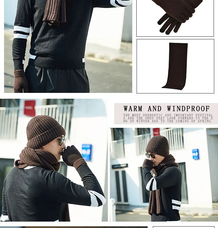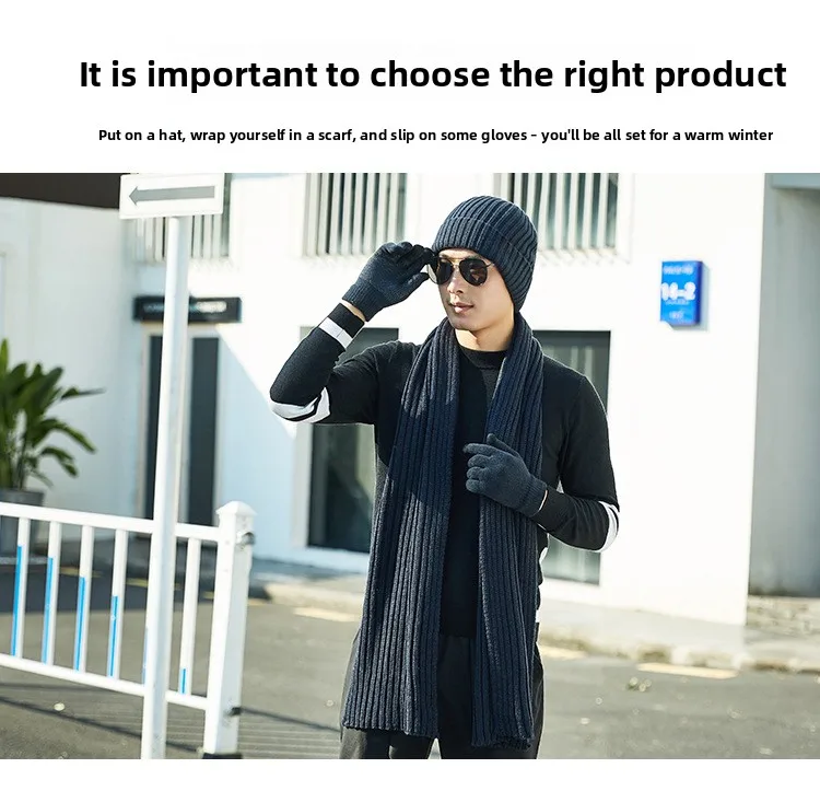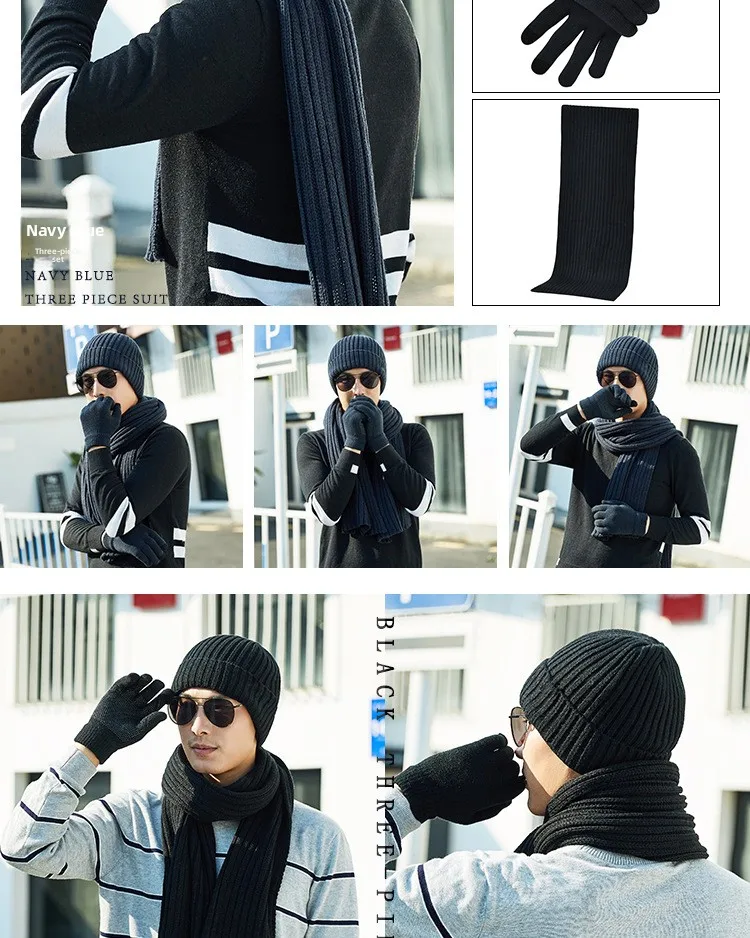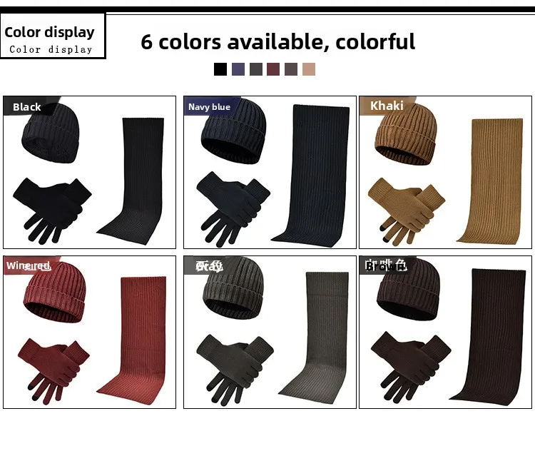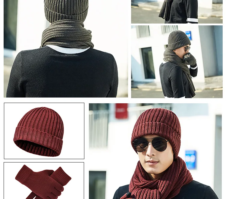 Guanti sciarpa per cappello caldo da esterno spesso lavorato a maglia tinta unita unisex autunno e inverno alla moda e atmosferico Cappellini in tre pezzi