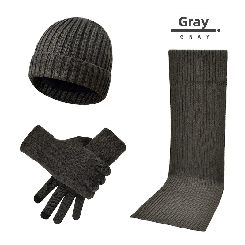 Guanti sciarpa per cappello caldo da esterno spesso lavorato a maglia tinta unita unisex autunno e inverno alla moda e atmosferico Cappellini in tre pezzi
