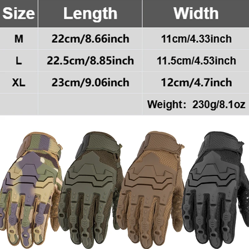 Guanti tattici touch screen da esterno Guanti da ciclismo per moto Sport Arrampicata Caccia Guanti a dita intere Guanti da uomo