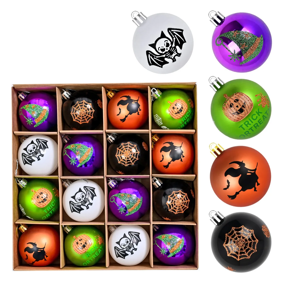 Halloween 6 cm 16 pezzi palline spettrali elettrolitiche dipinte che si illuminano al buio scheletro scuro zucca decorazione set albero appeso festa
