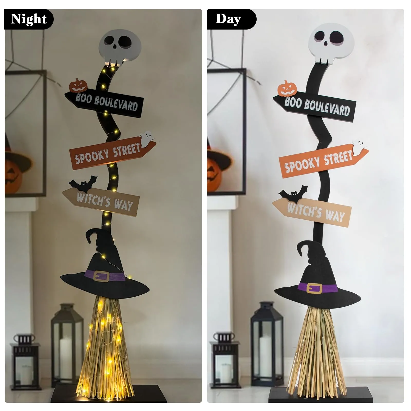 Decorazioni per Halloween stregate-la decorazione della strega di Halloween include parti di segni in legno, viti, cacciavite, 50 lampadine luci a stringa (batterie AA non incluse) e un manuale di istruzioni per l’installazione senza problemi.