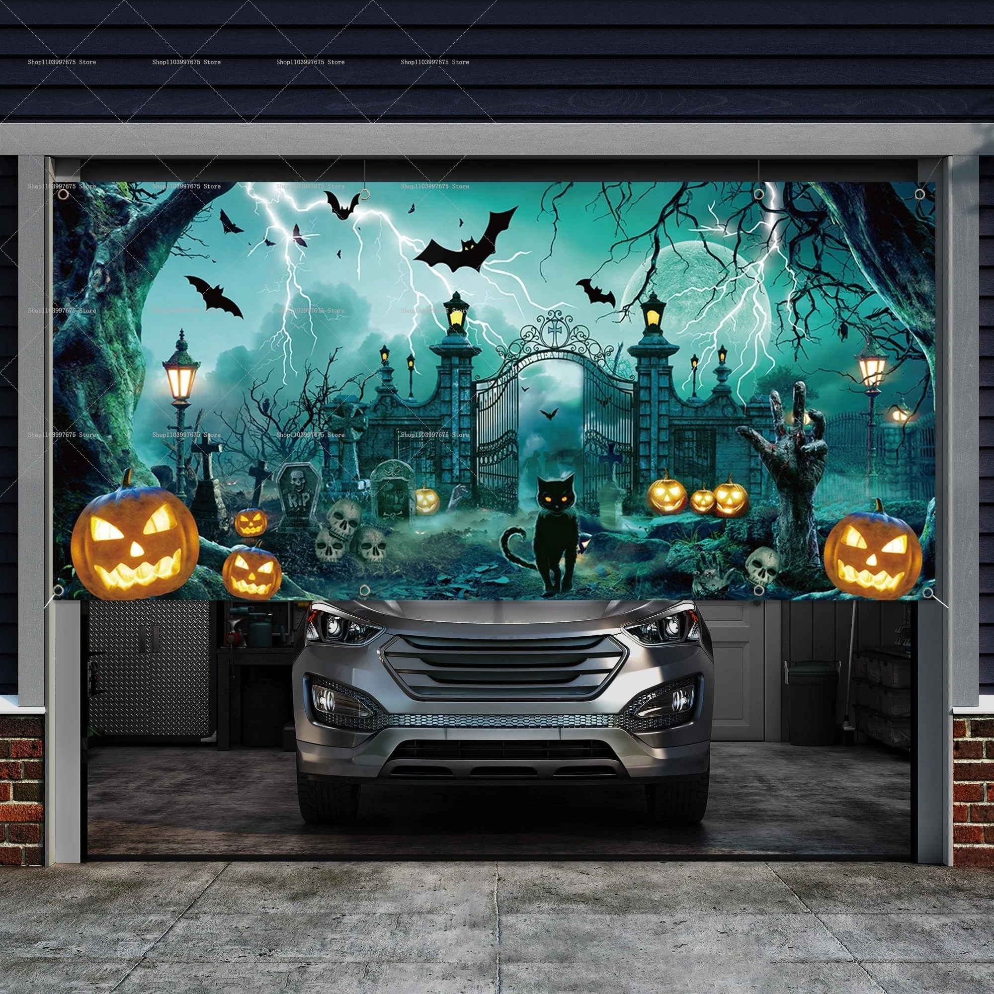 Halloween Scheletro Zucca Porta del garage Banner Decor Fondale fotografico Pareti esterne Eventi Sfondo Puntelli Forniture per feste