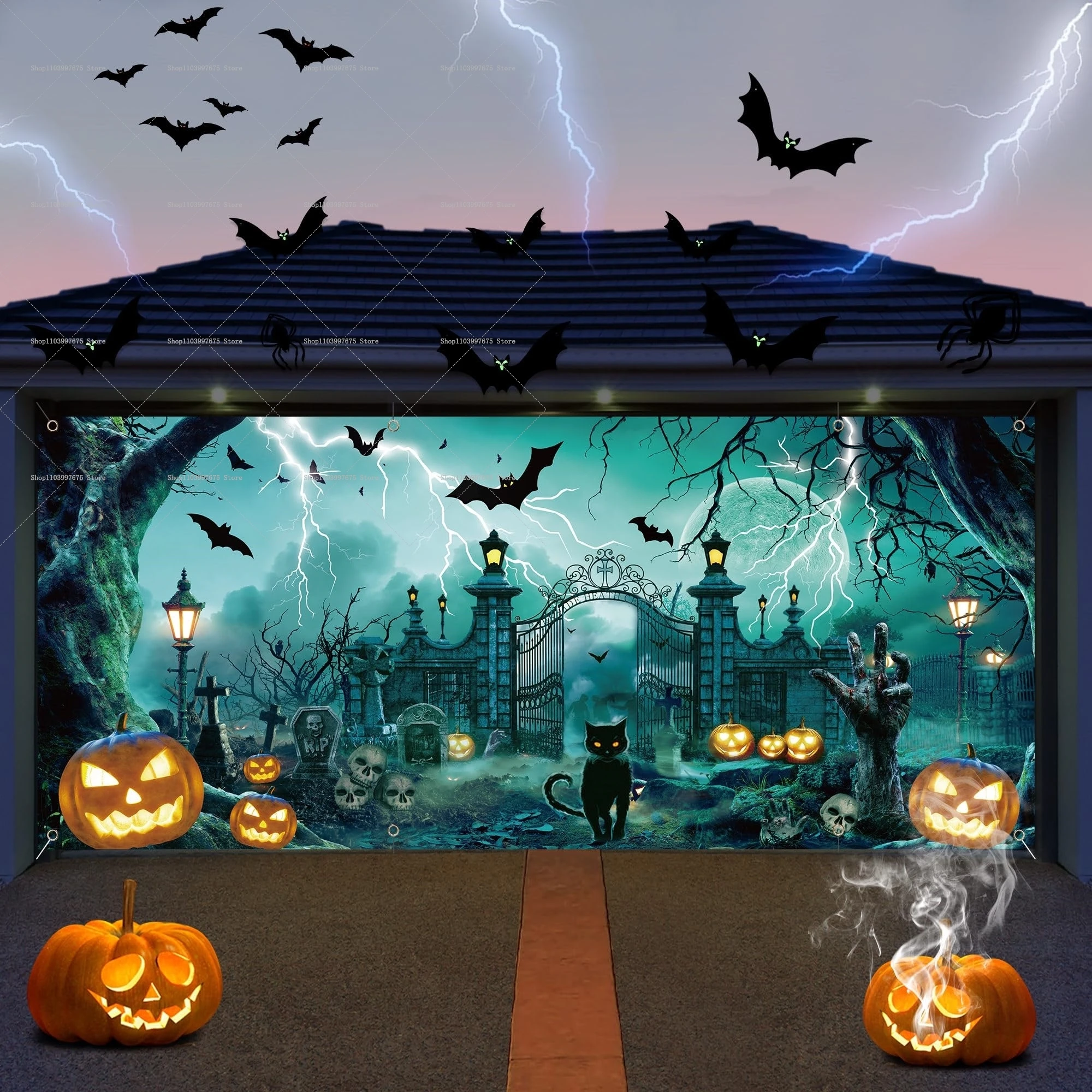 Halloween Scheletro Zucca Porta del garage Banner Decor Fondale fotografico Pareti esterne Eventi Sfondo Puntelli Forniture per feste