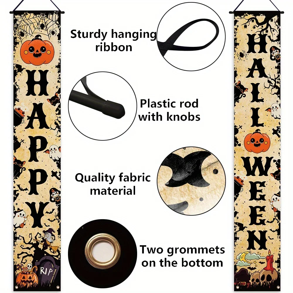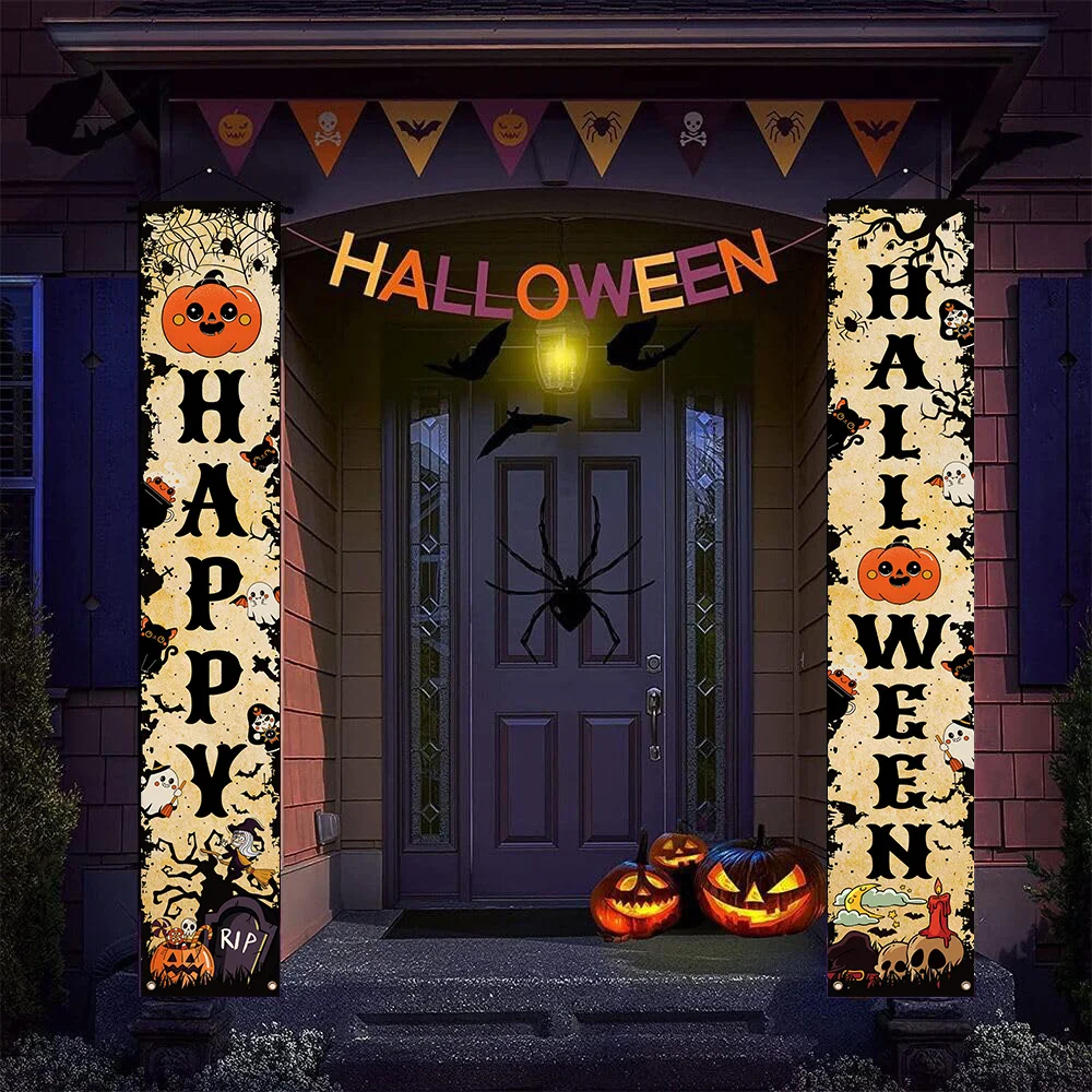 Happy Halloween Banner Zucca Fantasma Halloween Trucco Distico Decorazione per feste Portico Segno Interno Esterno Appeso a parete Sfondo