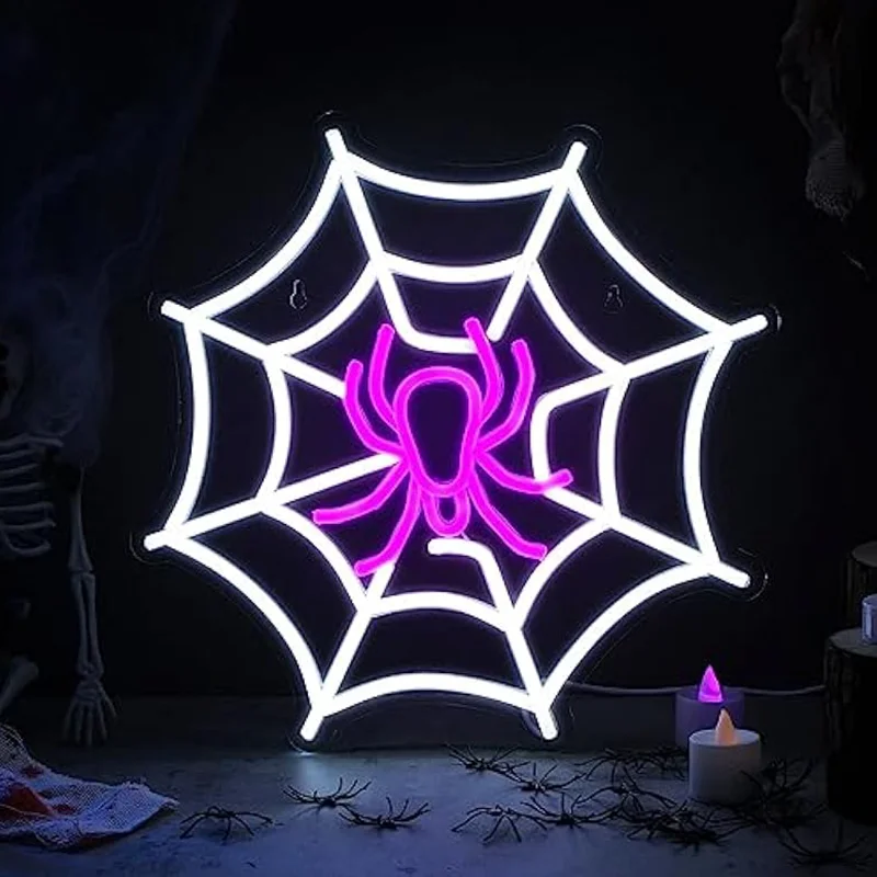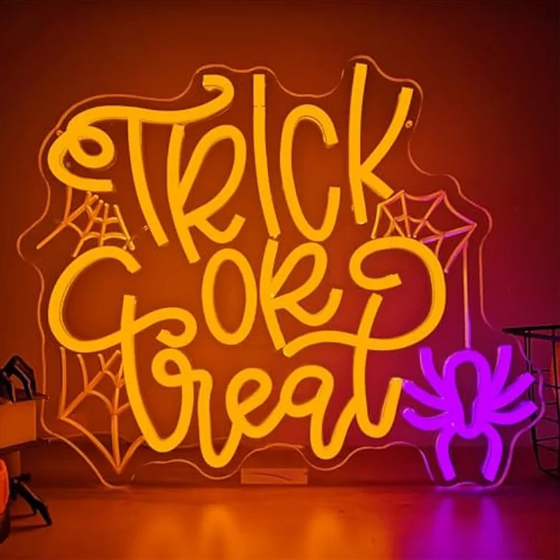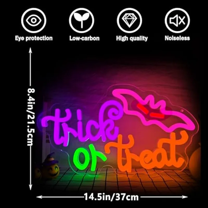 Happy Halloween Insegna al neon USB dimmerabile Dolcetto o scherzetto Insegna al neon Decorazione da parete per feste Bar Salone Finestra Portico Porta d’ingresso Regali