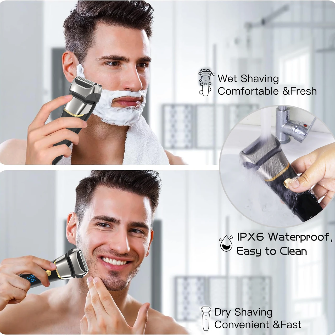 Hatteker Lamina Rasoio Elettrico 4D Per Gli Uomini Ricaricabile Barba Rasoio Trimmer Macchina IPX6 Lavaggio 8000 giri/min Per Barbiere HT-909
