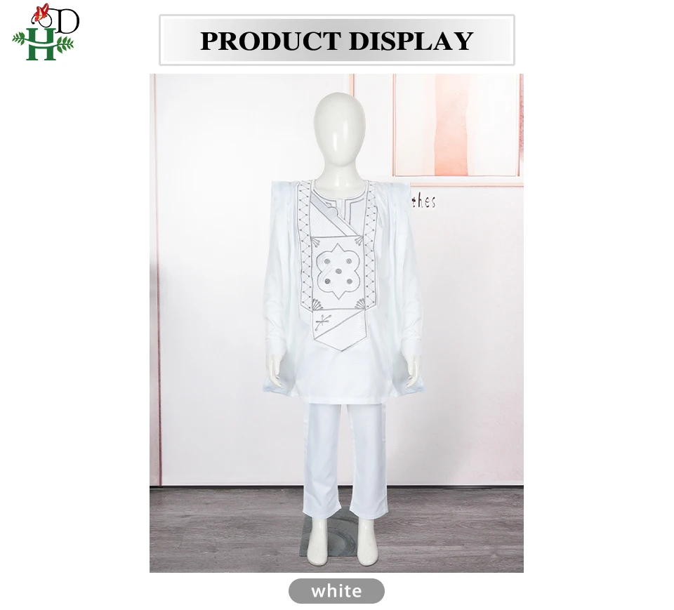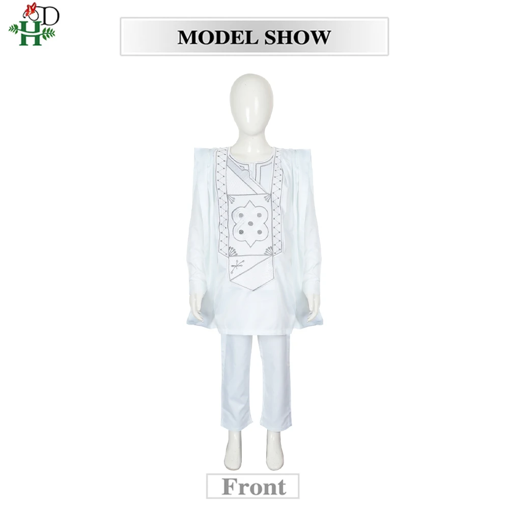 H&D Camicia Bianca Pantaloni 3 Pezzi Set Per Bambini Ragazzi Vestito Africano Bambini Dashiki Ricamo Bazin Thobe Vestito Regali Di Compleanno 2025