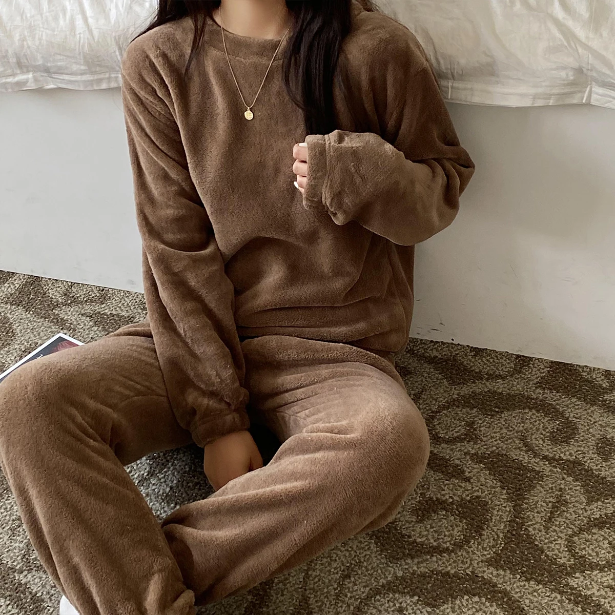 HELIAR Pigiama in velluto da donna Set Top ampio e pantaloni in vita elastica Home Casual Abito di lana caldo Donna 2025 Autunno Inverno 1HELIAR Pigiama in velluto da donna Set Top ampio e pantaloni in vita elastica Home Casual Abito di lana caldo Donna 2025 Autunno Inverno