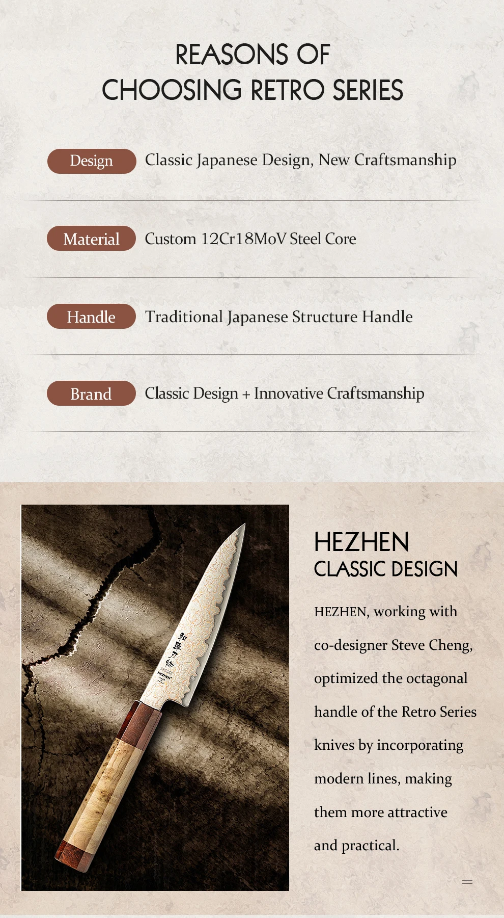 Coltello multiuso HEZHEN serie retrò da 5,5 pollici