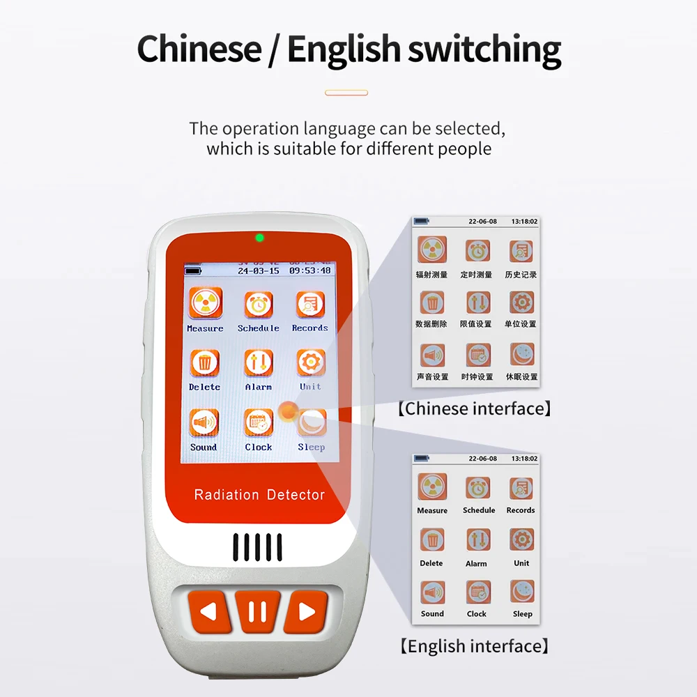 Design multifunzionale, con funzione di commutazione in lingua cinese e inglese, il linguaggio operativo può essere selezionato, che è adatto per persone diverse.Funzione commutabile delle unità di misurazione. Indicazione di guasto dei sensori (display mostra “dispositivo danneggiato”).
