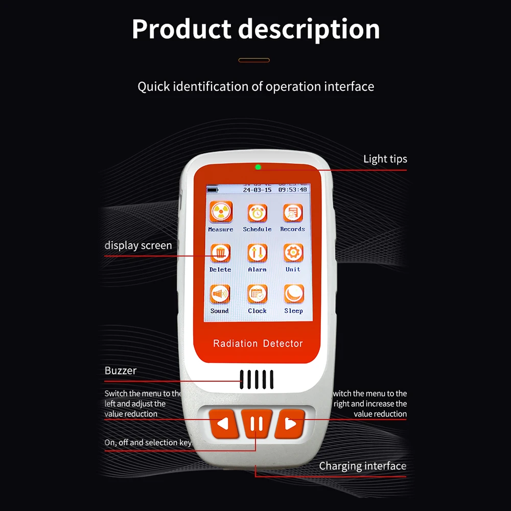 Il rilevatore viene utilizzato per misurare le radiazioni dei raggi X, γ e β, è ottimale per misurare piccoli cambiamenti nei livelli di radiazione e ad alta sensibilità per i nuclidi più comunemente usati.