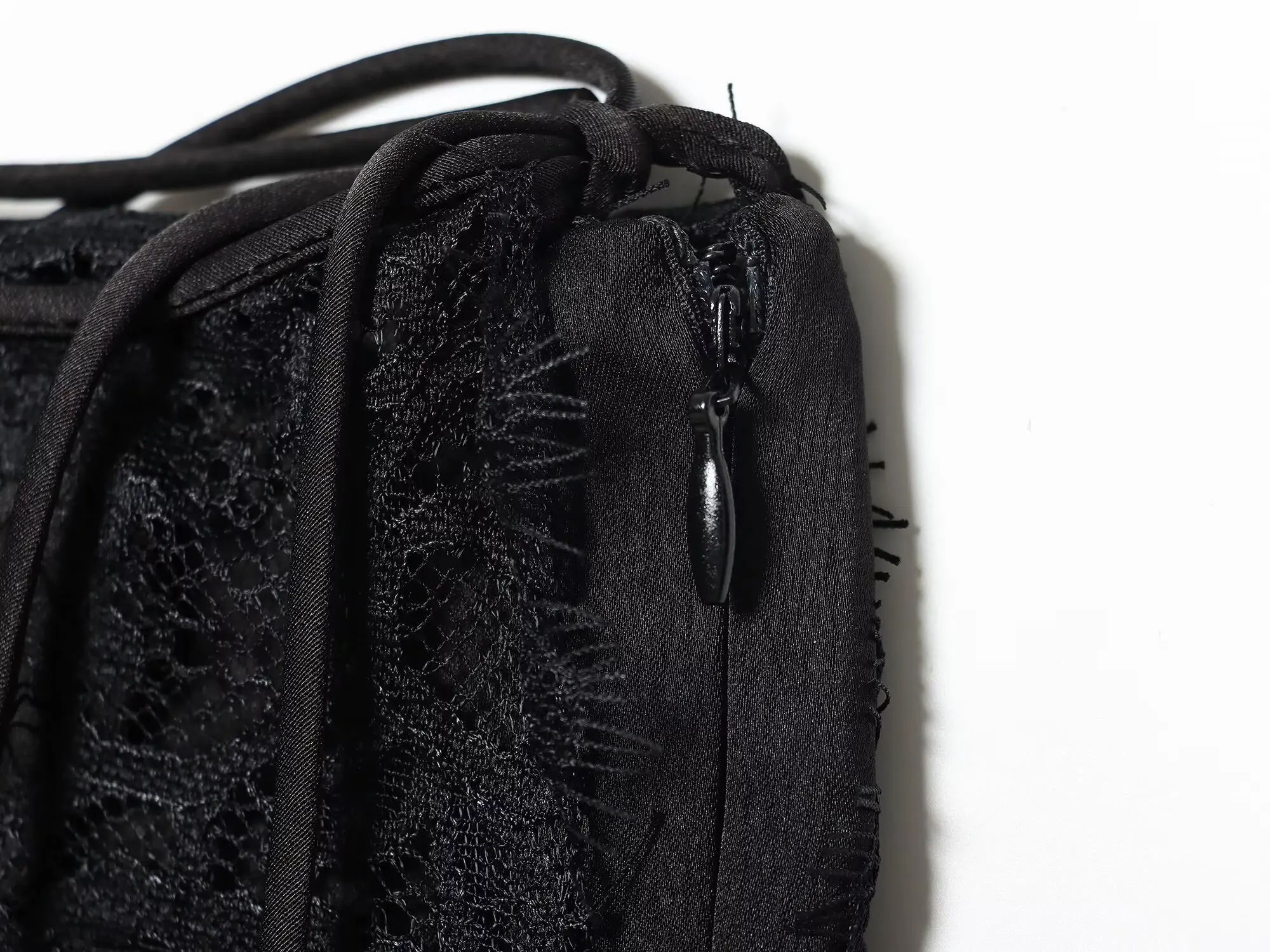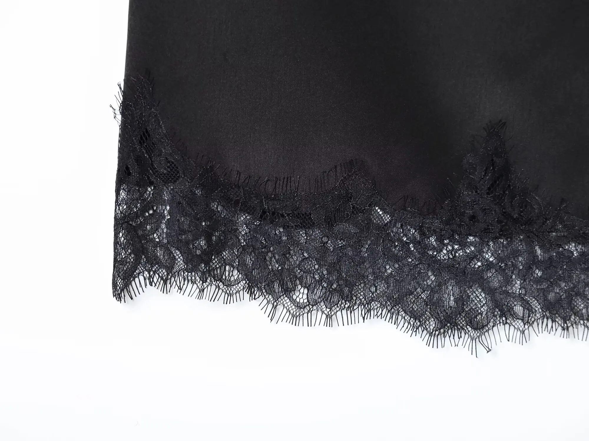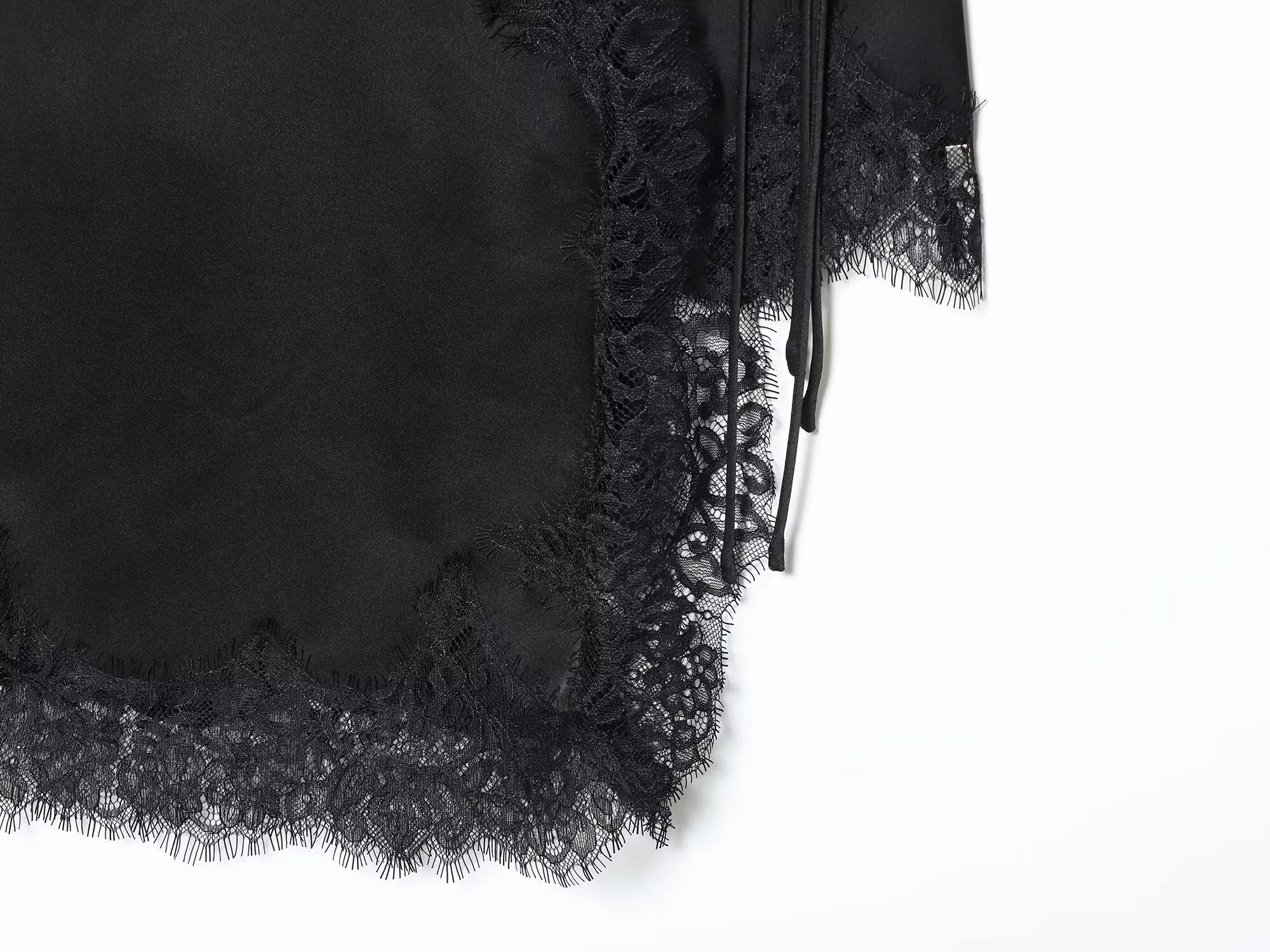 HH Gonna da donna in raso di pizzo nero versatile moda femminile a vita media Temperamento sottile con cerniera Fiocco con lacci Gonna a trapezio asimmetrica