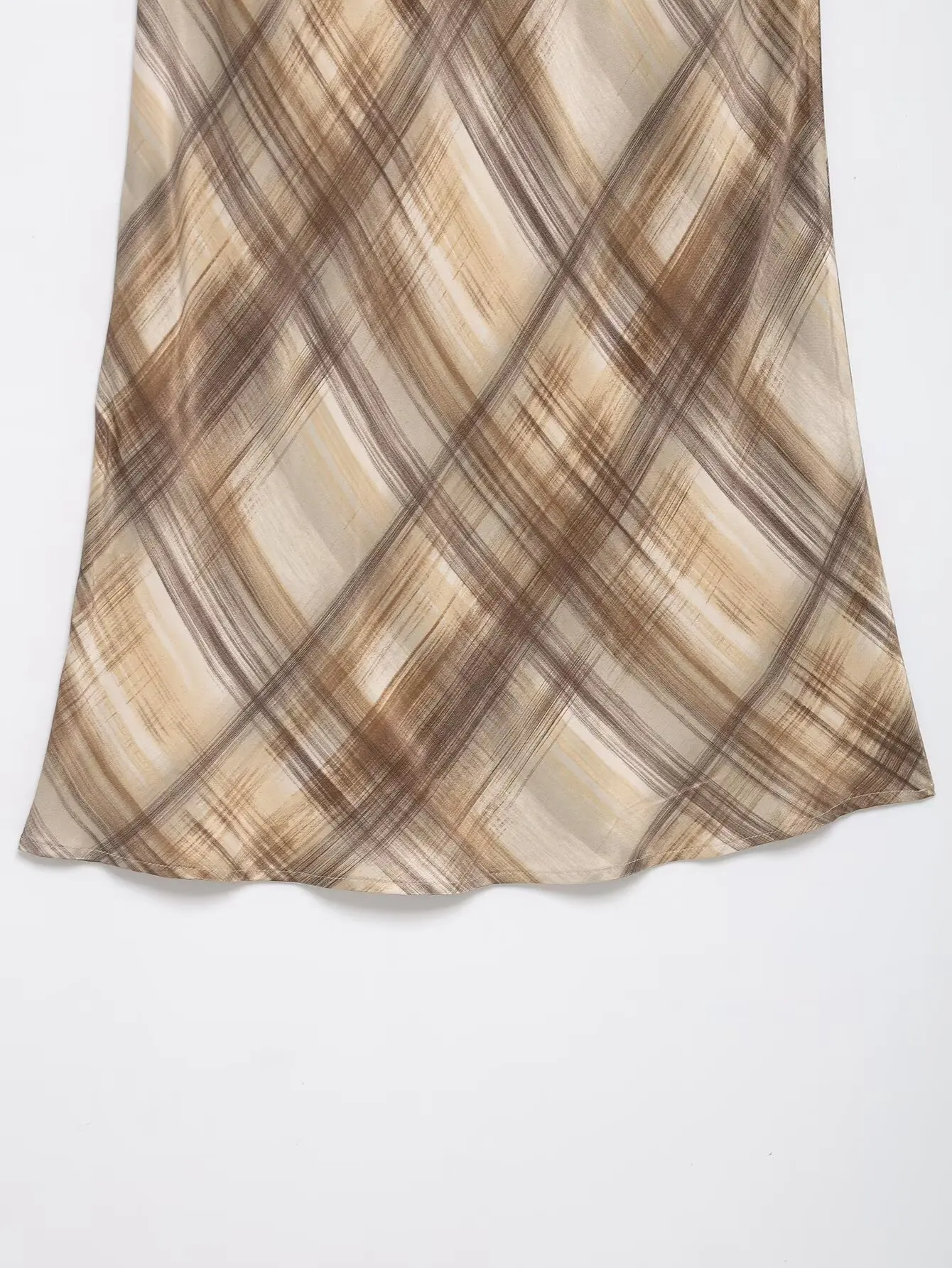 HH Nuova Donna Estate Moda Beach Party Rombo Modello scozzese Struttura in seta Gonna lunga Gonna elegante casual stile street femminile