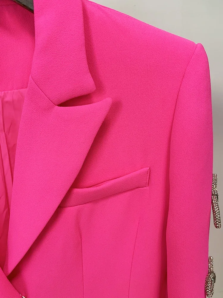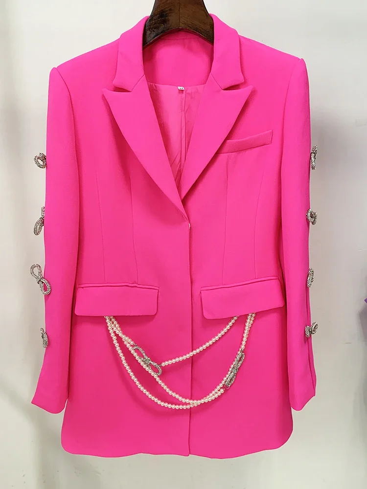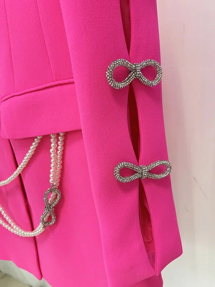 HIGH STREET Più Nuovo 2025 Designer Elegante Moda Donna Perle Catena Diamanti Perline Scava Fuori Fiocco Manica Abito Blazer