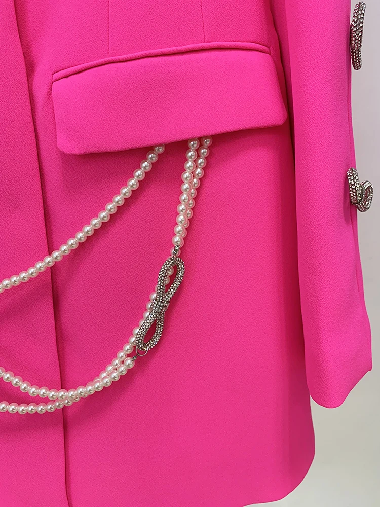 HIGH STREET Più Nuovo 2025 Designer Elegante Moda Donna Perle Catena Diamanti Perline Scava Fuori Fiocco Manica Abito Blazer