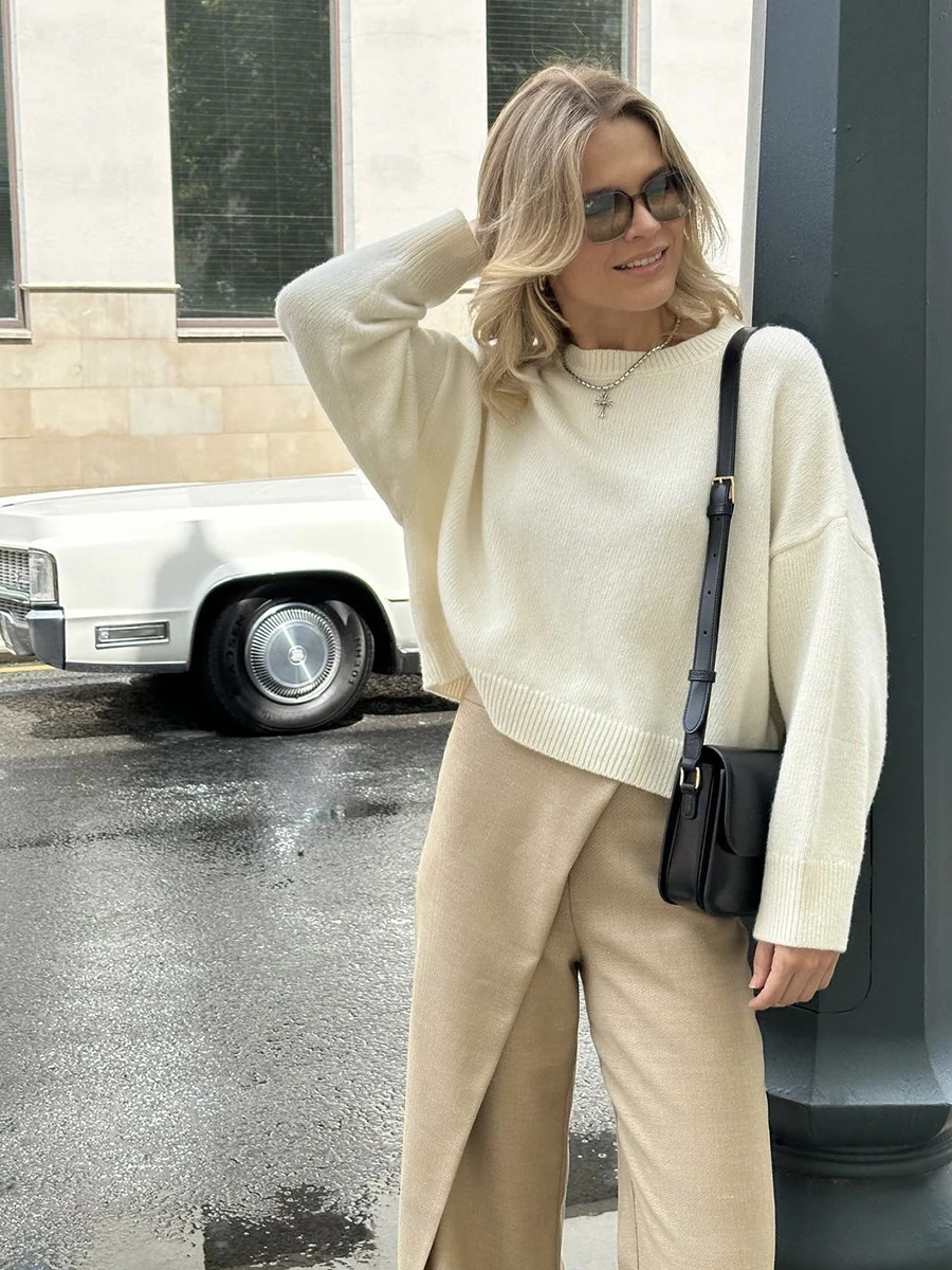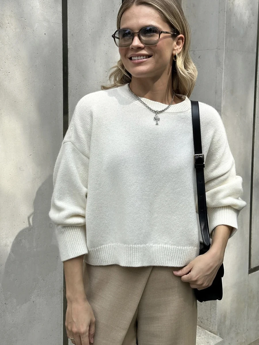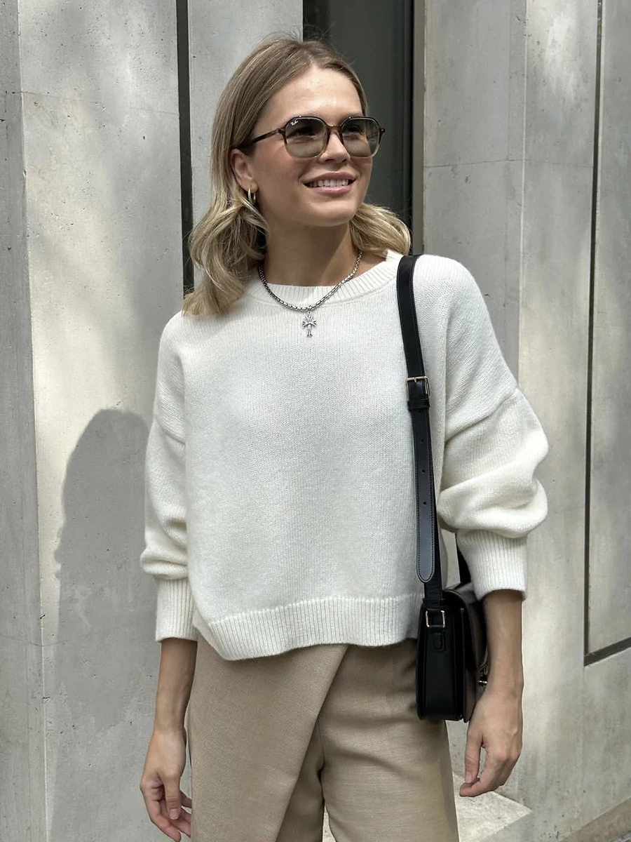 Mi è piaciuto il maglione, è piacevole al tatto e ha un colore bellissimo. È piuttosto ampio, quindi la parte anteriore è più corta rispetto a quella posteriore. Le maniche hanno un po’ di lunghezza extra per un’altezza di 171 cm.