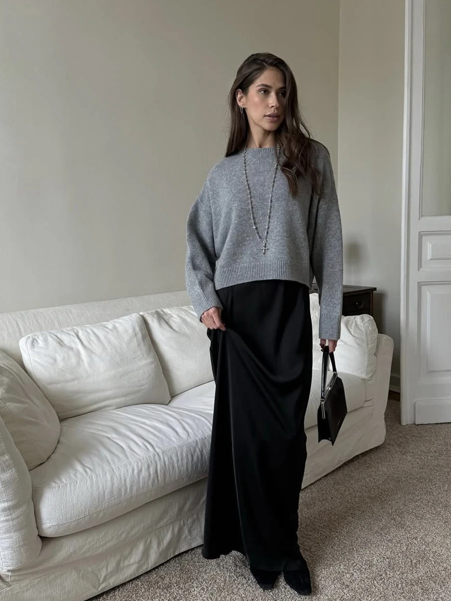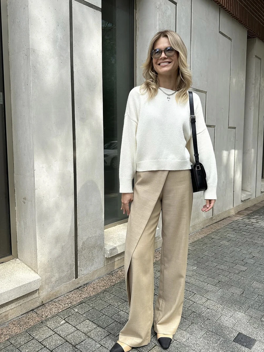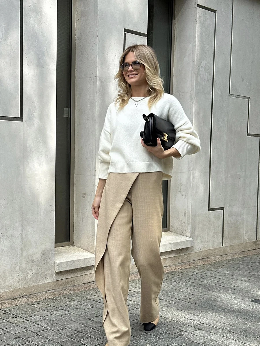 Mi è piaciuto il maglione, è piacevole al tatto e ha un colore bellissimo. È piuttosto ampio, quindi la parte anteriore è più corta rispetto a quella posteriore. Le maniche hanno un po’ di lunghezza extra per un’altezza di 171 cm.