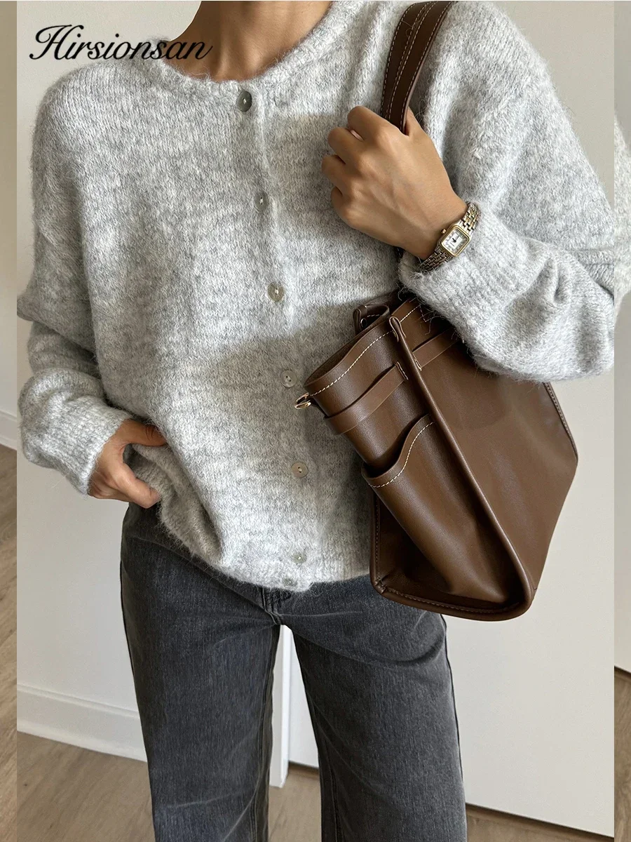 Hirsionsan elegante maglione a maniche lunghe da donna 2024 nuovo cardigan casual femminile monopetto morbido capispalla lavorato a maglia in cashmere