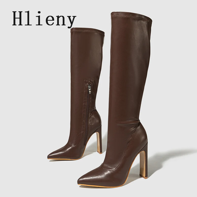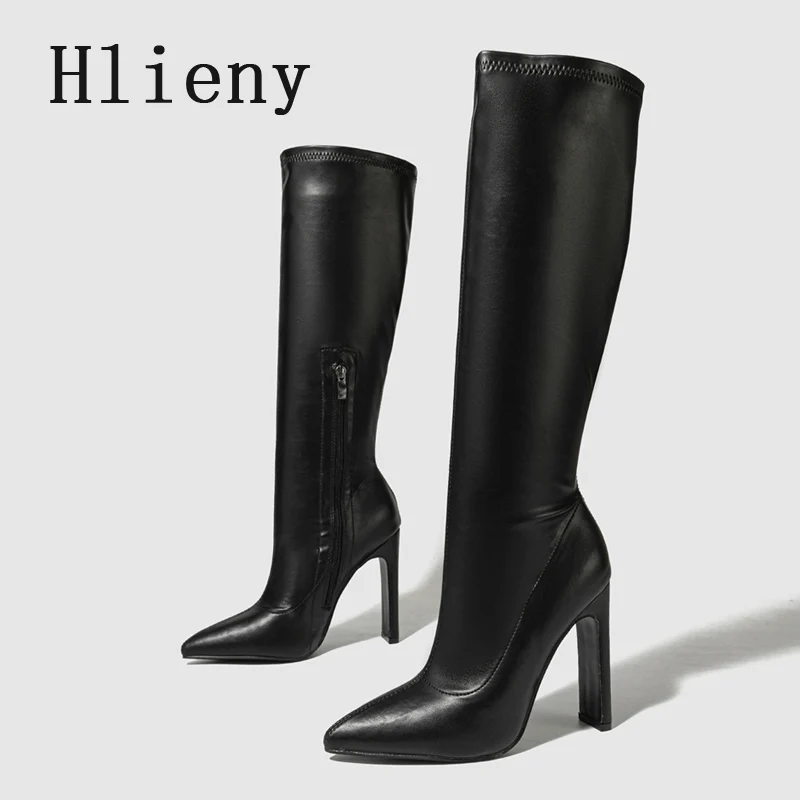 Hlieny Autunno Inverno Donna Stivali al ginocchio Moda Punta a punta Tacchi alti Scarpe Cerniera Office Lady Lungo Botas De Mujer Taglia 42