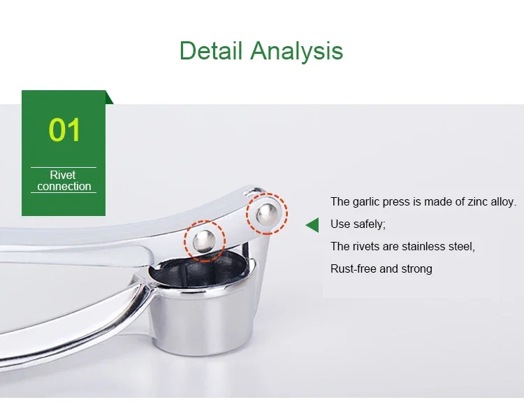 4. L’utensile per la pressatura dell’aglio presenta superficie liscia e fine, la maniglia è comoda da usare.