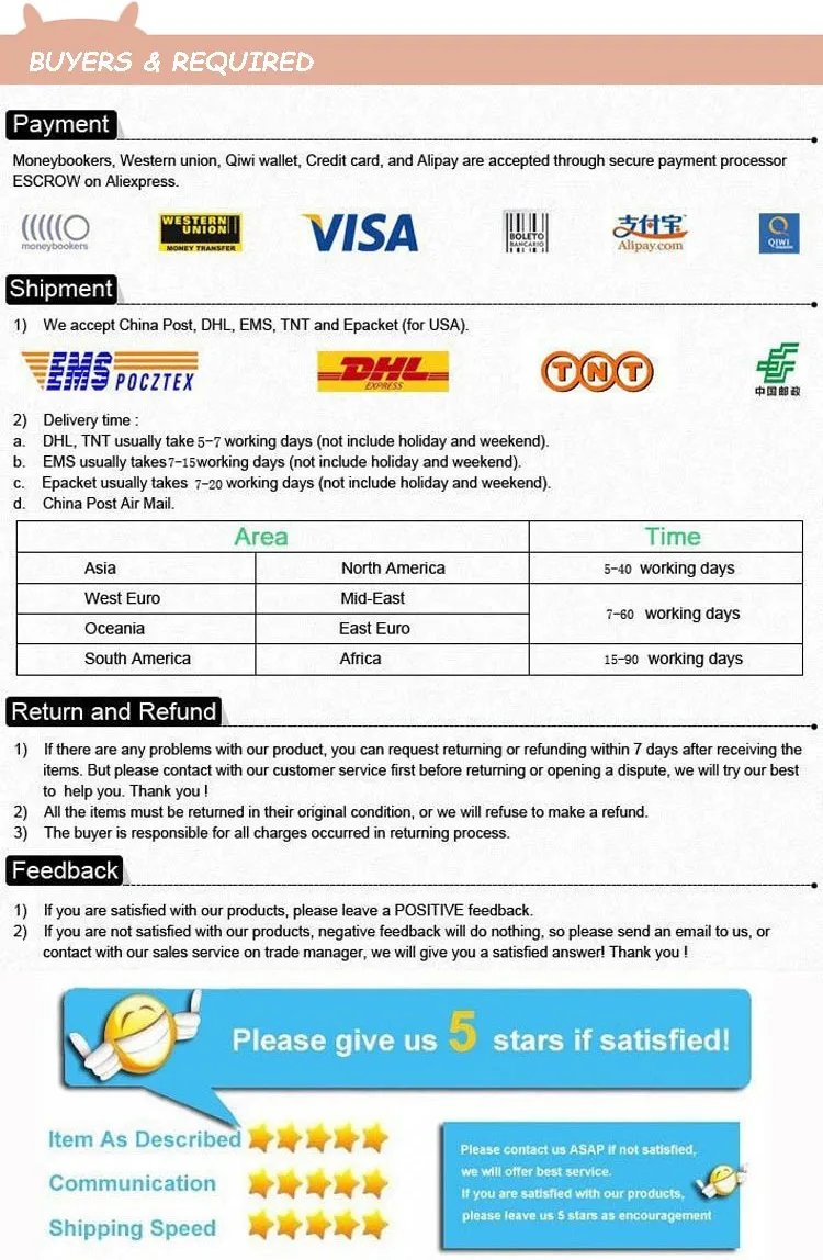 Per favore non lasciareci cinque stelle feedback positivo se sei soddisfatto con i nostri prodotti e i servizi. Siamo felici per fare lo stesso per te.