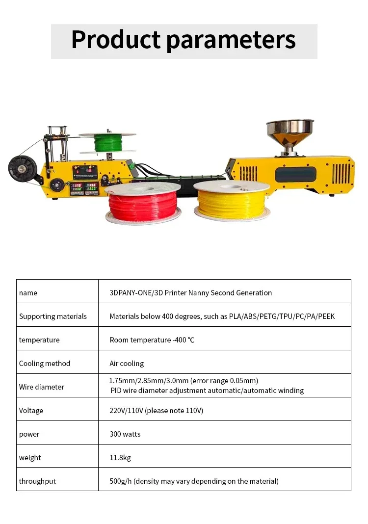 HT400 Desktop Estrusore Stampa 3D Filament Maker Per Filamento 3D Filo Automatico Diametro 1.75mm 3mm per PLA PETG PA ABS PC PP