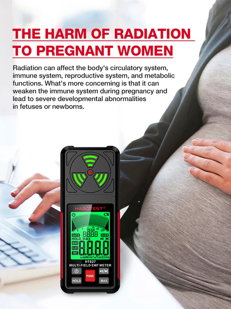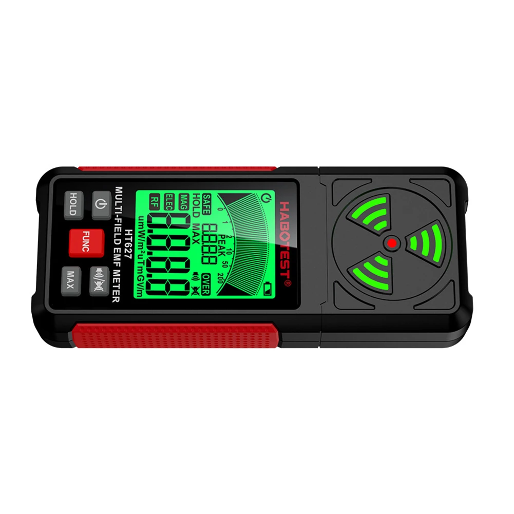 HT627 3 in 1 Tester di radiazioni elettromagnetiche Retroilluminazione LCD Campo elettromagnetico Misuratore EMF Cicalino Allarme Spegnimento automatico per frigorifero Computer