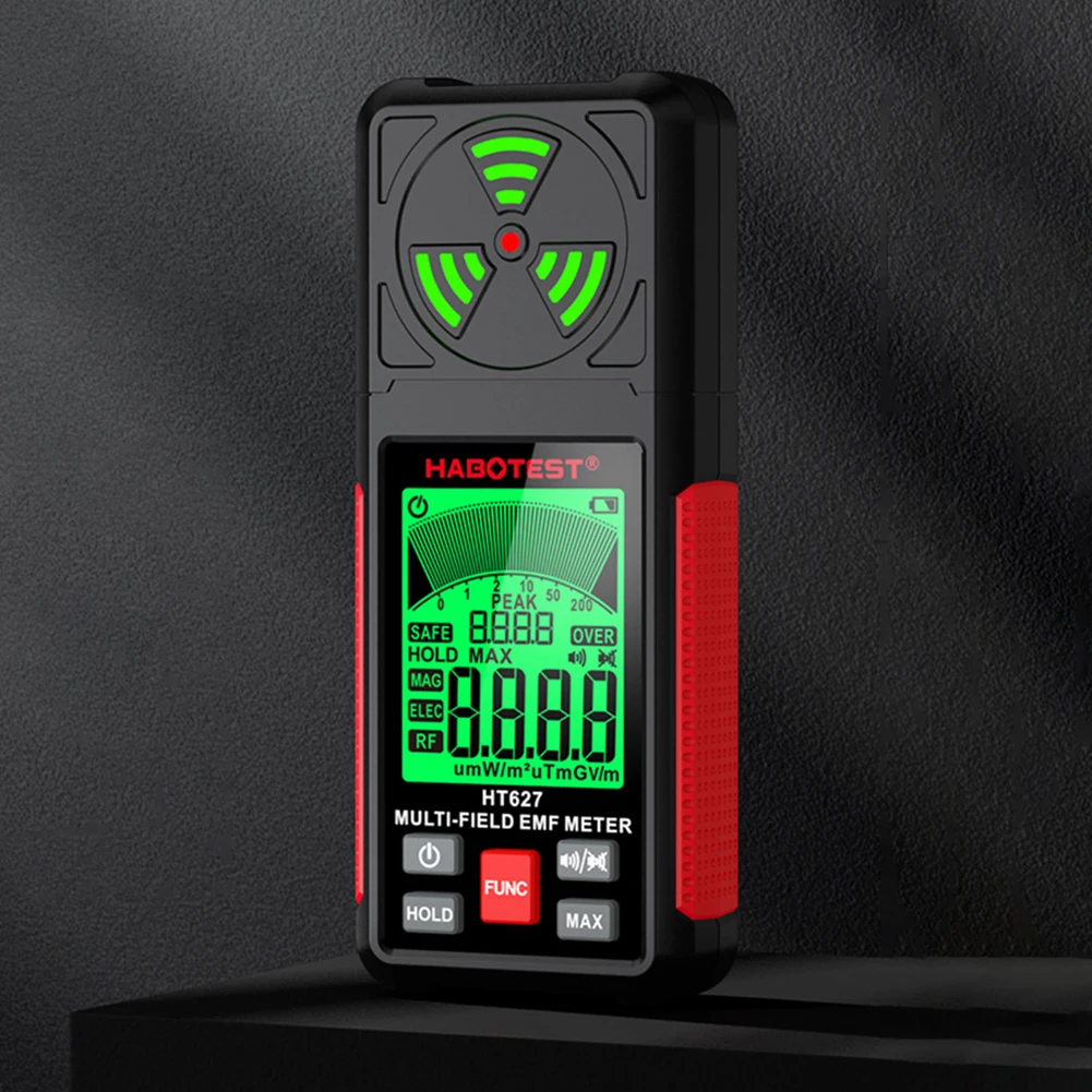 HT627 3 in 1 Tester di radiazioni elettromagnetiche Retroilluminazione LCD Campo elettromagnetico Misuratore EMF Cicalino Allarme Spegnimento automatico per frigorifero Computer