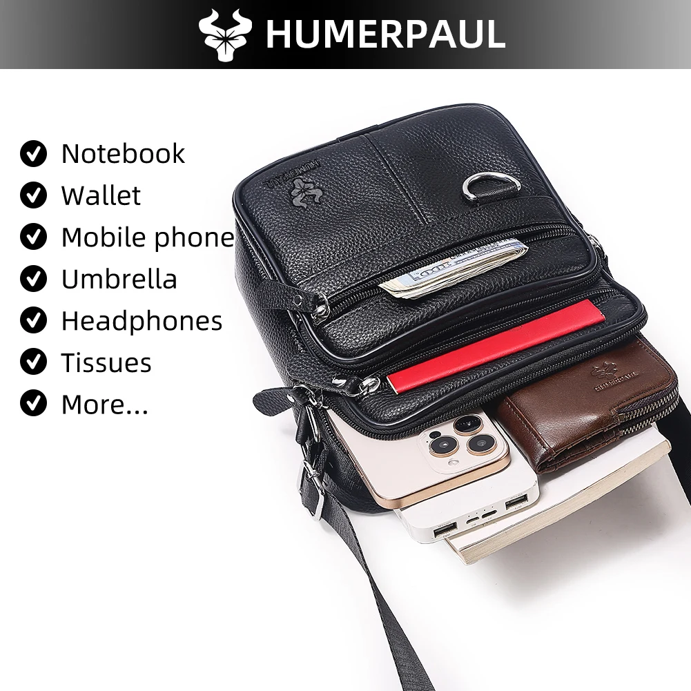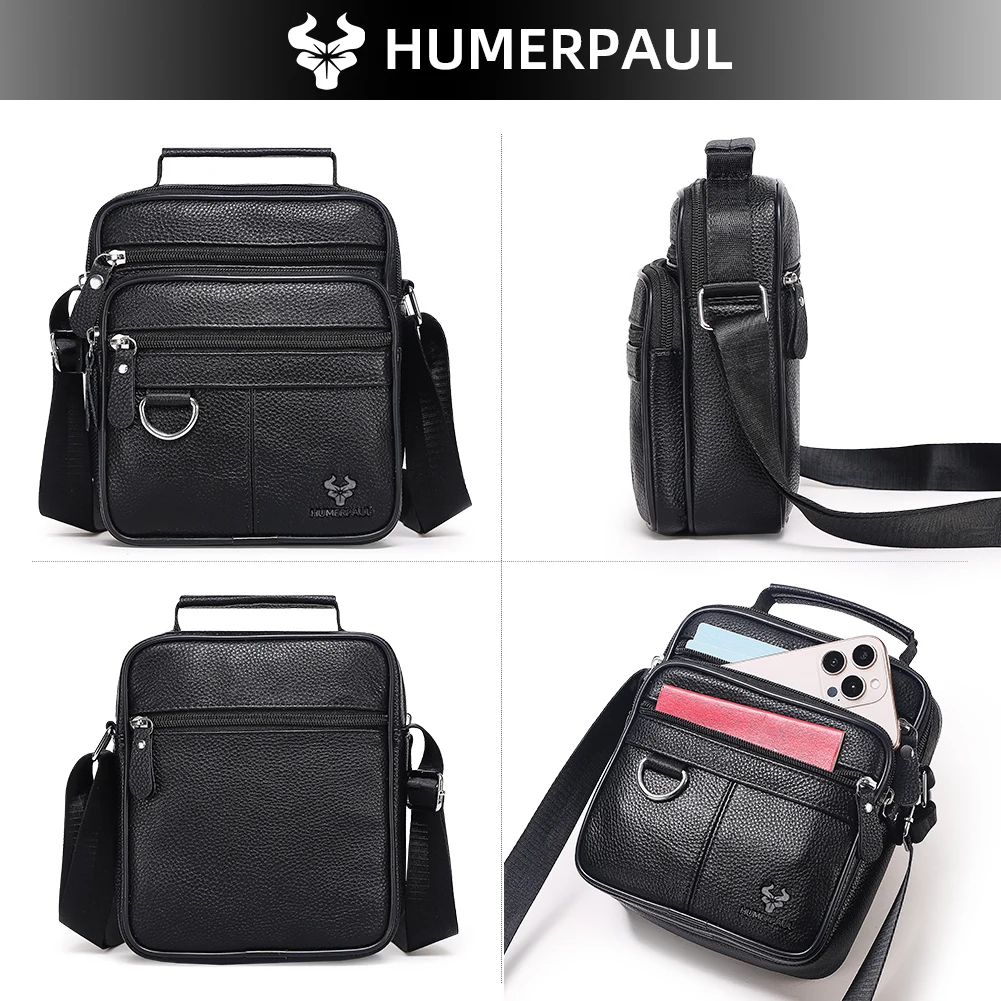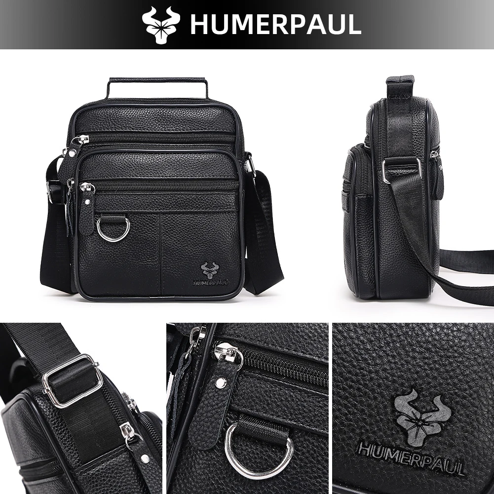 HUMERPAUL Borsa a tracolla da uomo in vera pelle Borse a tracolla da viaggio casual Mini borsa a tracolla da uomo di alta qualità