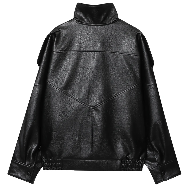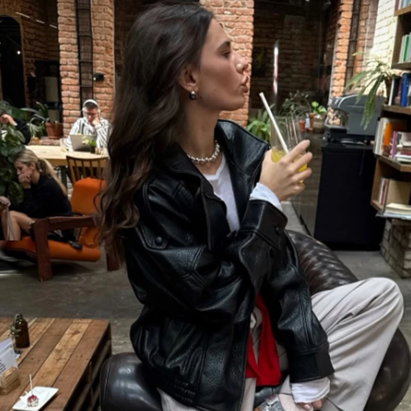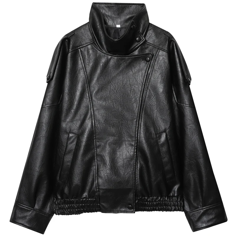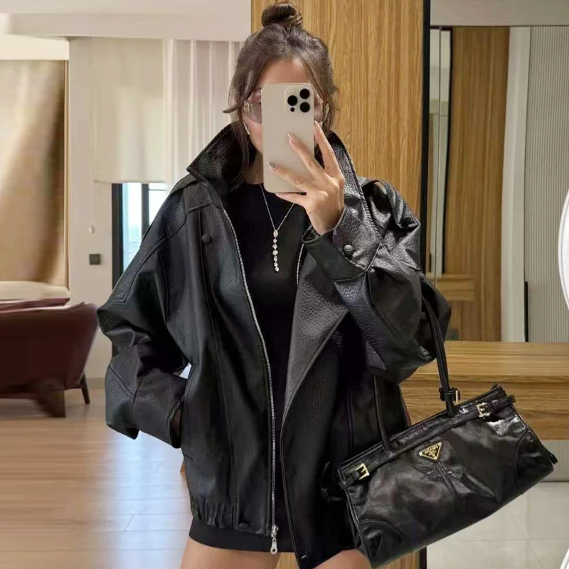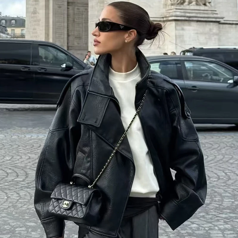 HXAO 2025 Giacche da donna Giacca in pelle nera pu Autunno Novità in cappotti e giacche Capispalla asimmetrici a maniche lunghe con cerniera