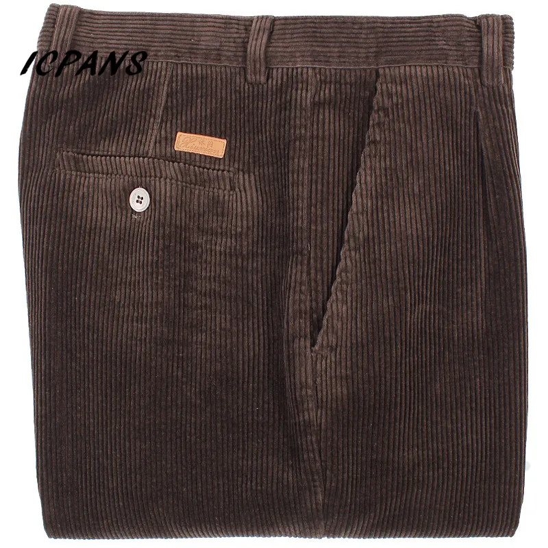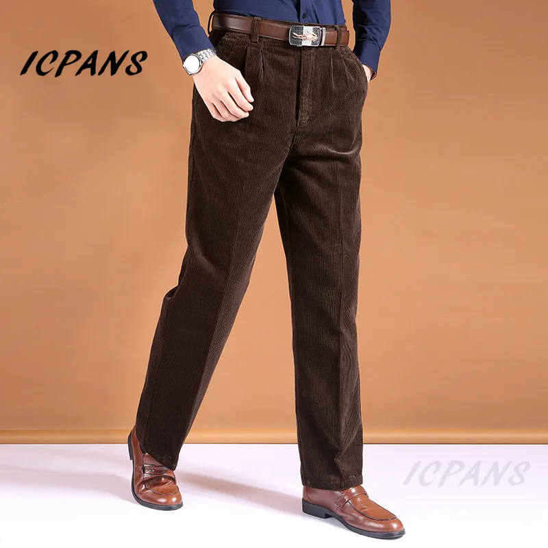 ICPANS Pantaloni da uomo in velluto a coste dritti spessi caldi autunno inverno pantaloni da uomo a vita alta pantaloni da uomo taglie forti 40 42 44 46
