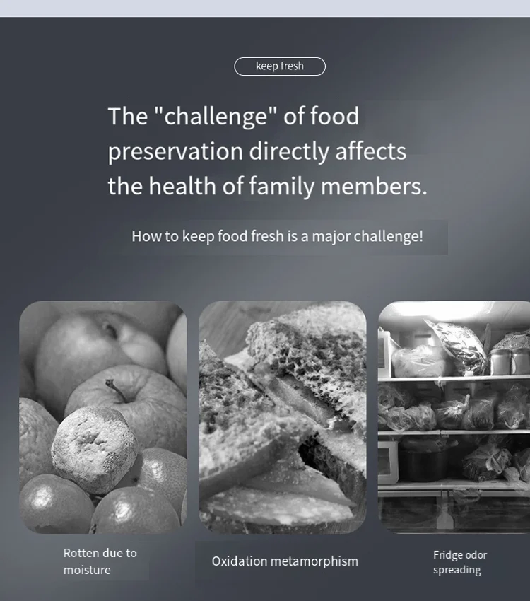 • Migliora la conservazione degli alimenti: trattiene efficacemente l’umidità e l’aroma, previene il congelamento, l’odore e la muffa e prolunga la durata di conservazione degli alimenti senza compromettere la qualità.