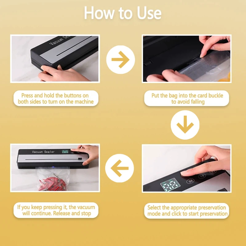 • Funzionamento semplice con un solo tocco – Questa macchina per sottovuoto è progettata per essere facile da usare, con un avvio rapido con una sola pressione, rendendola adatta a utenti di tutte le età, compresi anziani e bambini supervisionati.