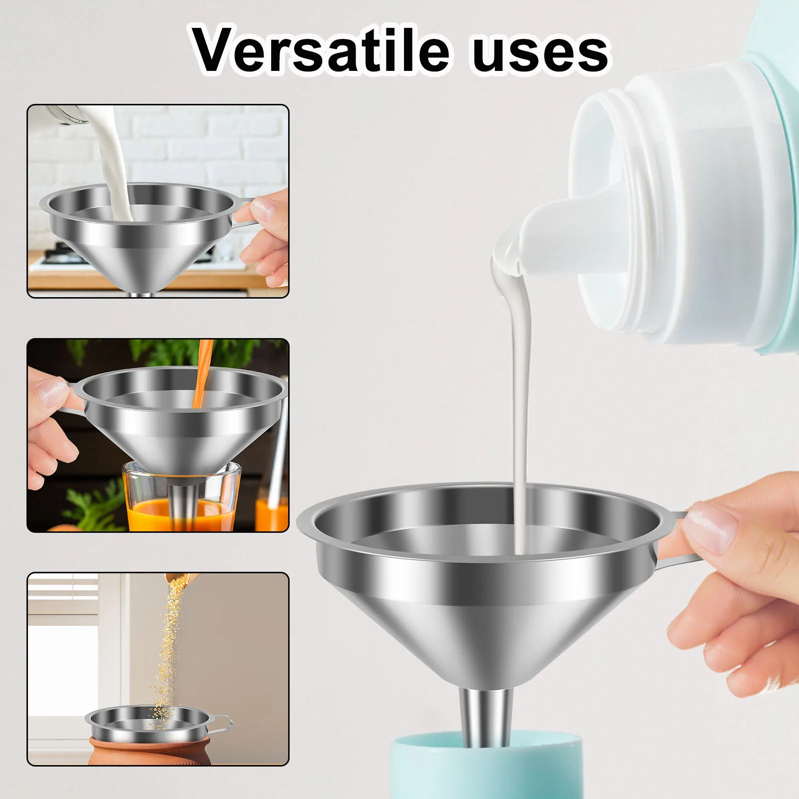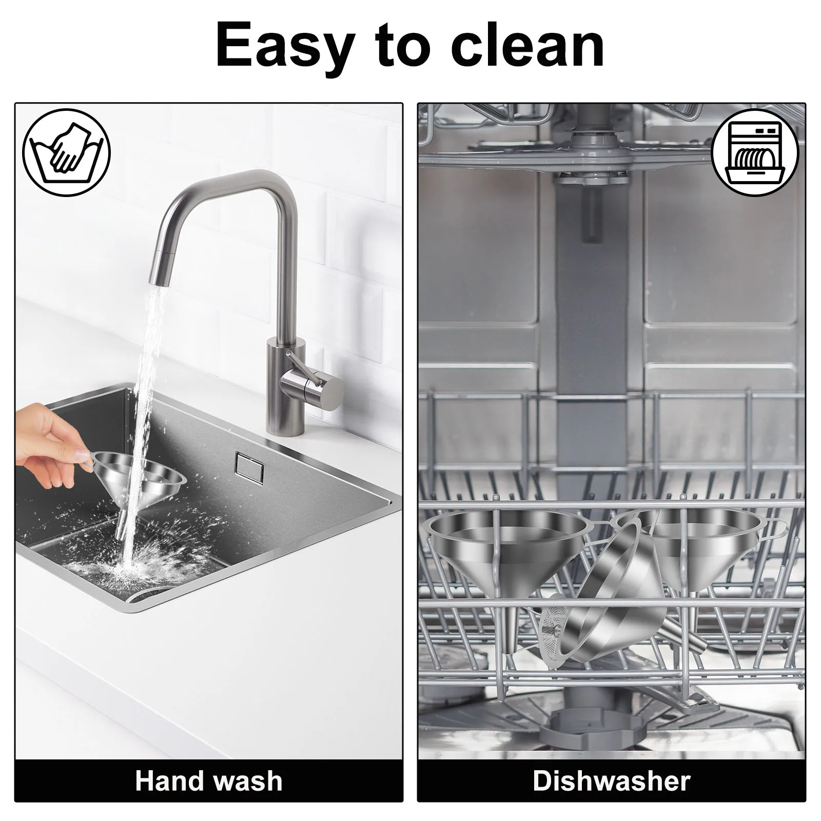 Materiale in acciaio inossidabile: il nostro imbuto da cucina è realizzato in acciaio inossidabile addensato, sicuro; non facile da arrugginire e non facile da rompere e danneggiare