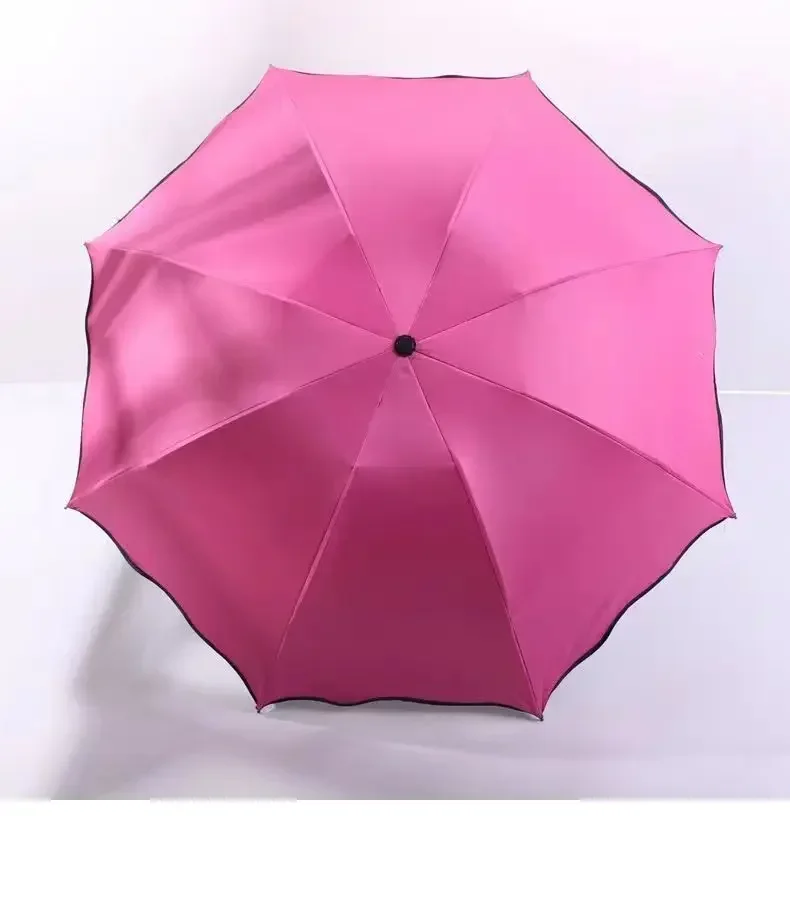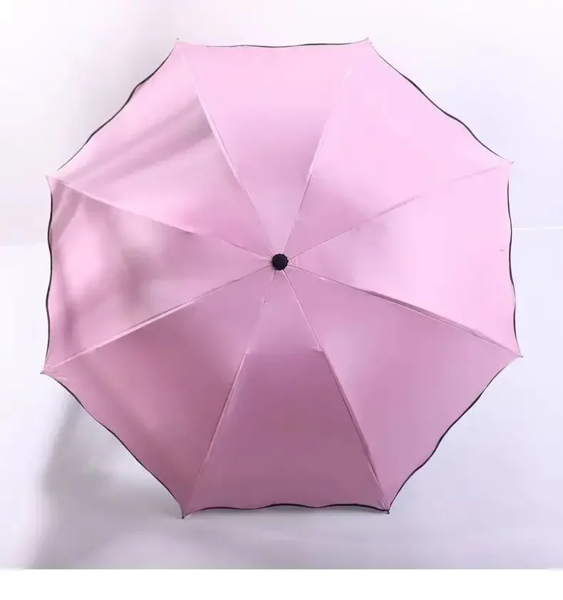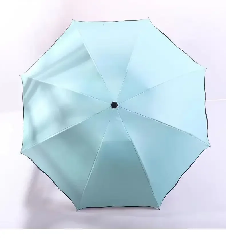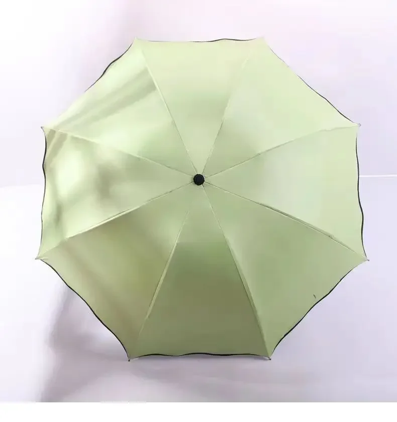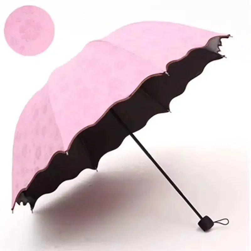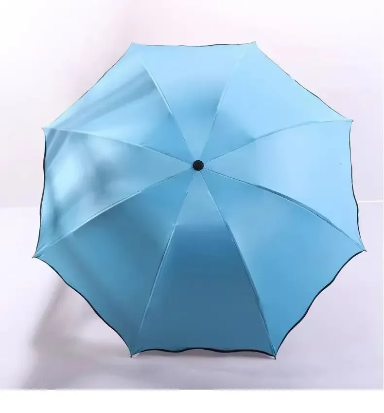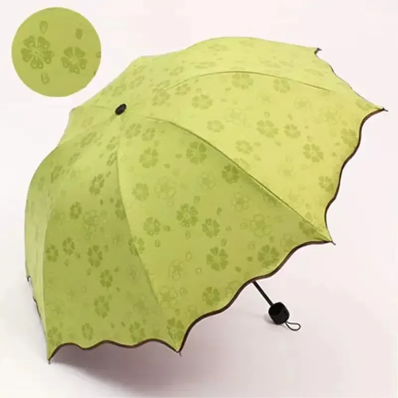 Incontro Ombrelli per fioritura d’acqua Ombrellone portatile Telaio Ombrello da viaggio per pioggia 3 volte Protezione UV Ombrello che cambia colore