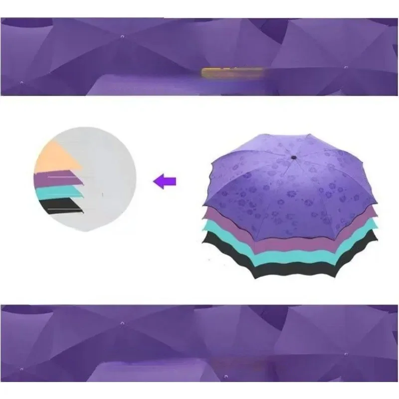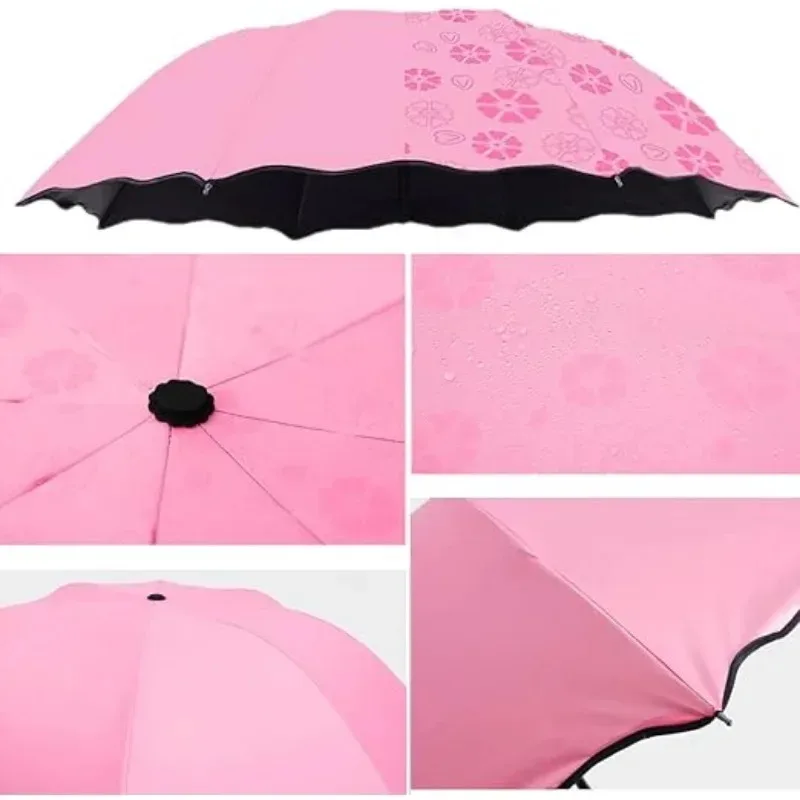 Incontro Ombrelli per fioritura d’acqua Ombrellone portatile Telaio Ombrello da viaggio per pioggia 3 volte Protezione UV Ombrello che cambia colore
