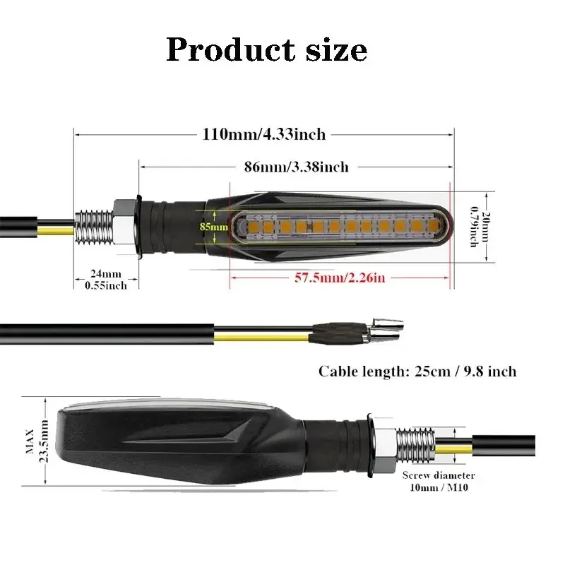 Questo indicatore di direzione a LED per moto è progettato per una compatibilità universale, rendendolo un’aggiunta versatile a qualsiasi moto.