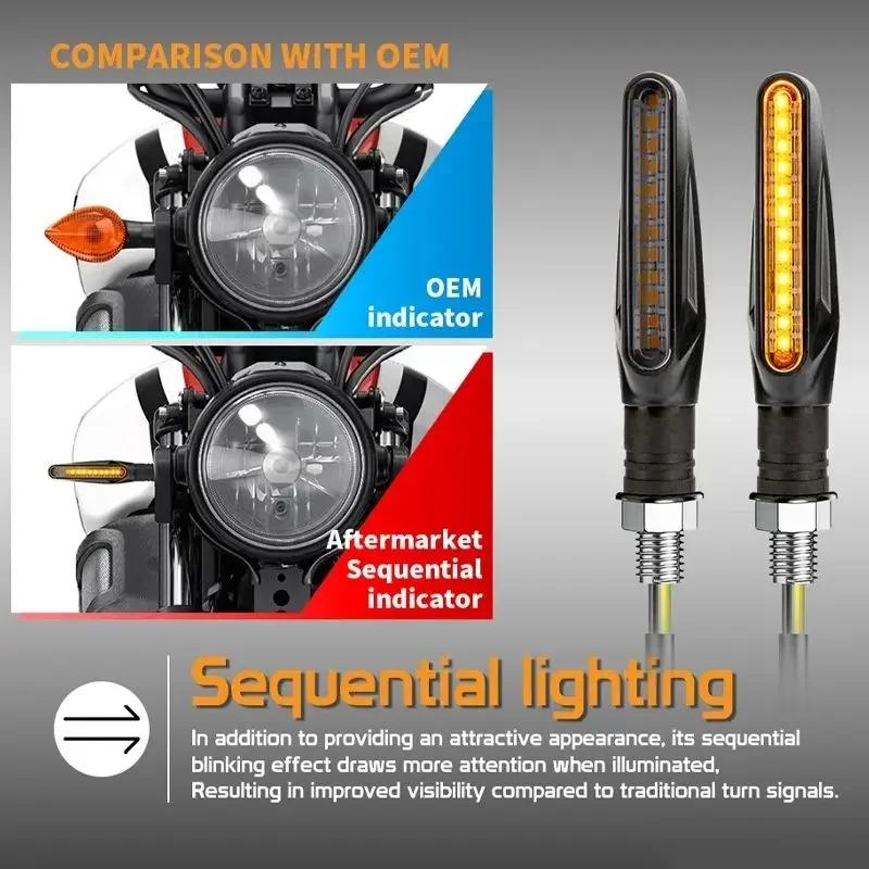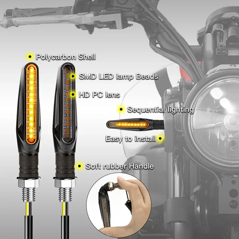 Indicatori di direzione universali per moto a LED 12V Luce Ambra Indicatore DRL dinamico che scorre Lampada lampeggiante posteriore per motocicli