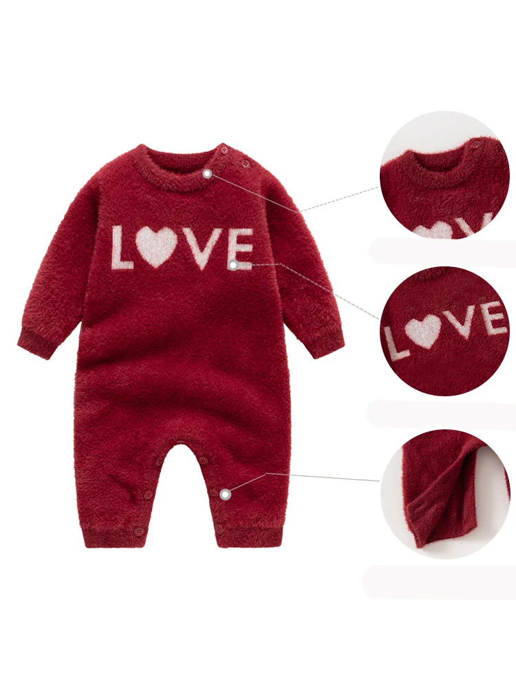 Pagliaccetti natalizi per neonato Inverno caldo pile Natale Ragazzi Ragazza Neonate Abbigliamento Love Overall Tute per neonati Abito natalizio