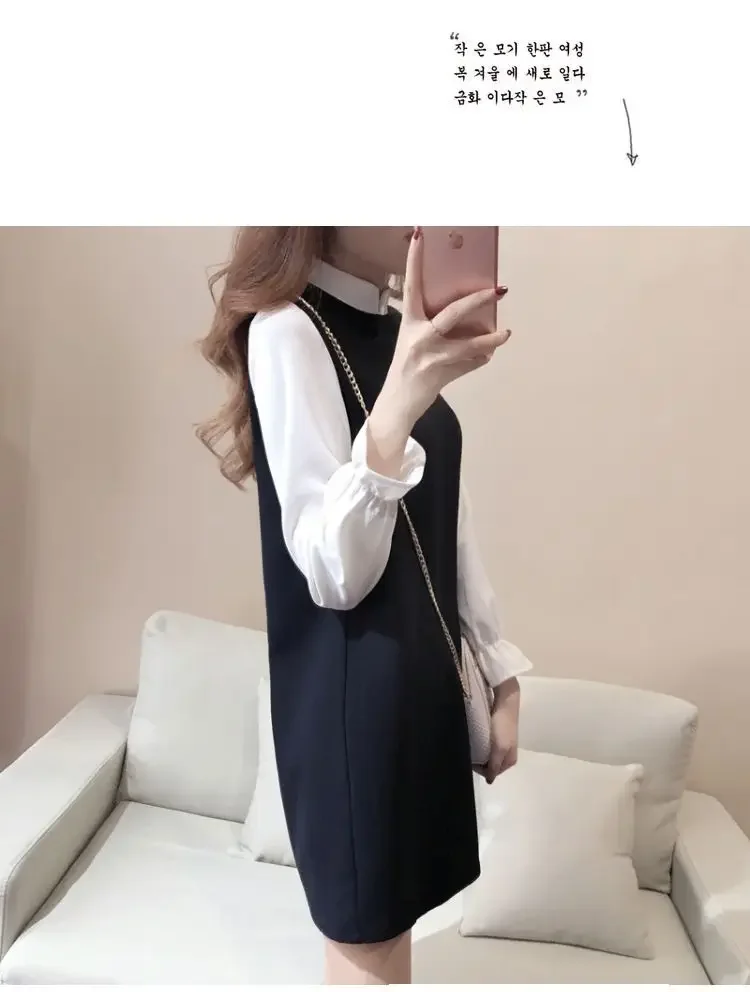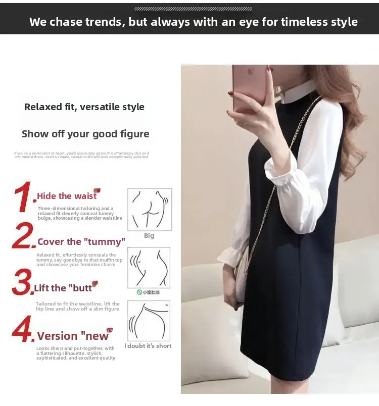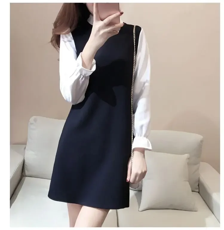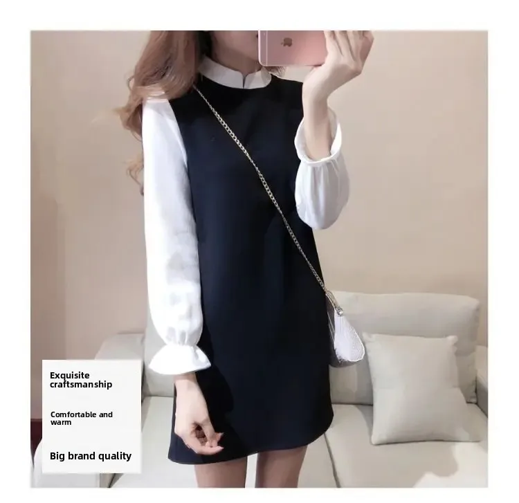 Inizio autunno sottile allentato dimagrante manica lunga strato base abito da donna falso in due pezzi stile coreano gonna a trapezio taglie forti 1Inizio autunno sottile allentato dimagrante manica lunga strato base abito da donna falso in due pezzi stile coreano gonna a trapezio taglie forti