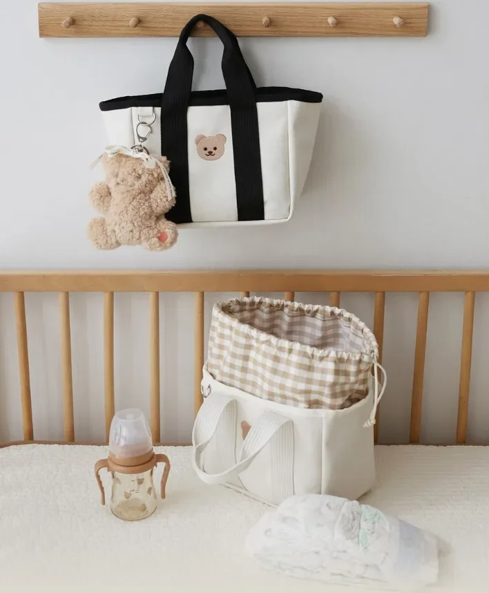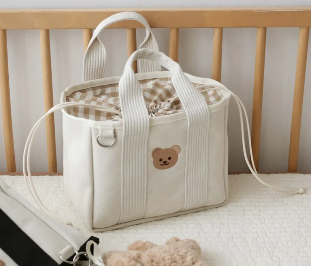 INS Corea Borsa per mamma Borsa per pannolini portatile di grande capacità Pannolino multifunzionale con coulisse in tela Borsa da esterno Borse per mamma e bambino