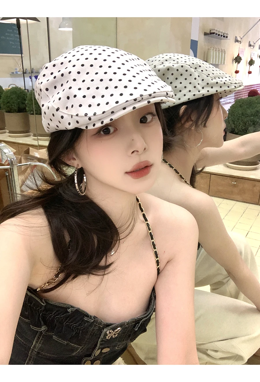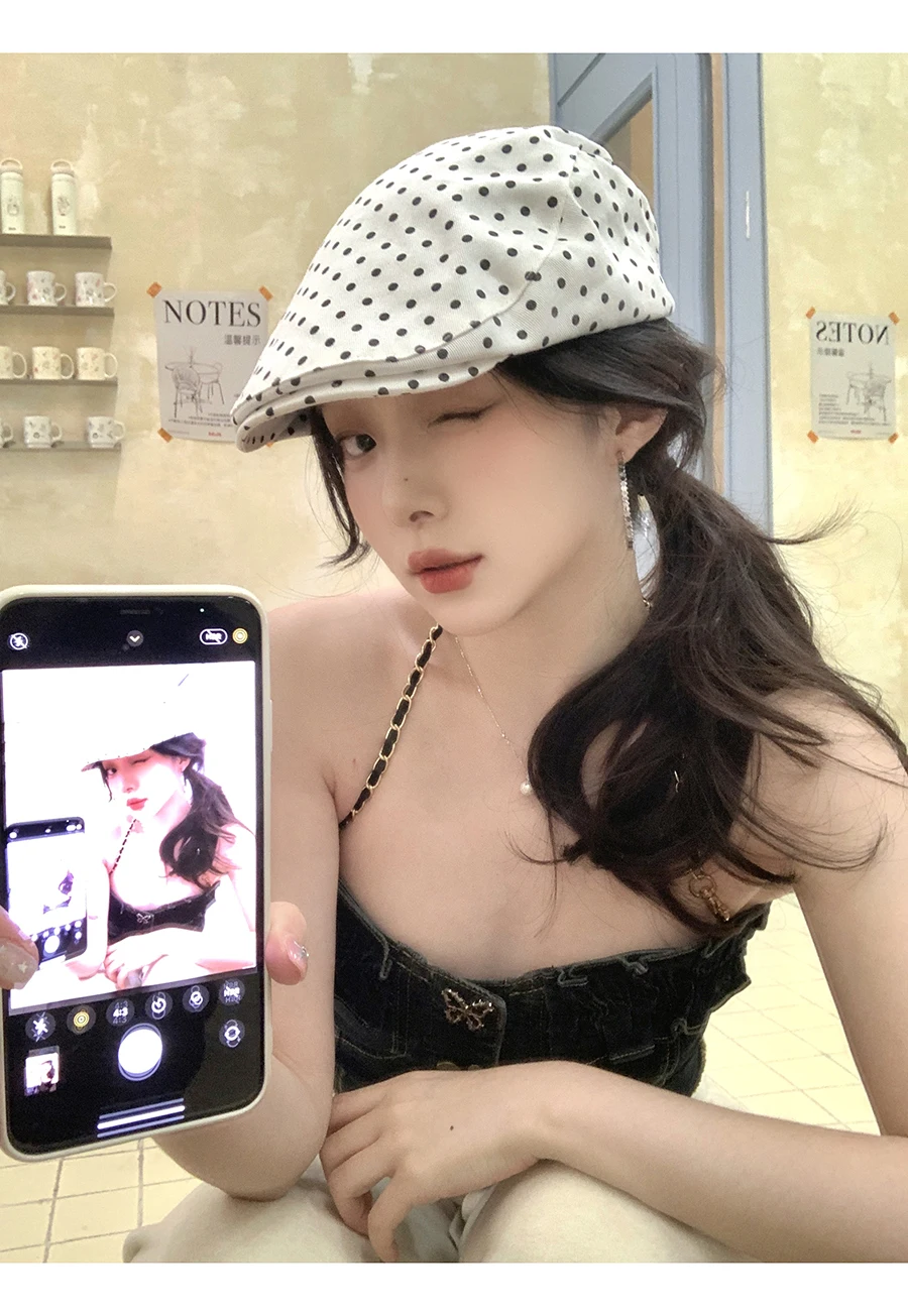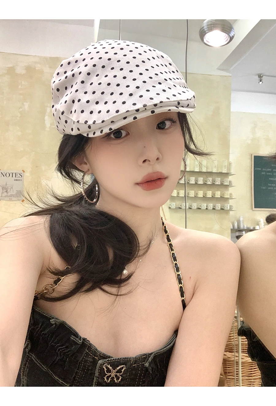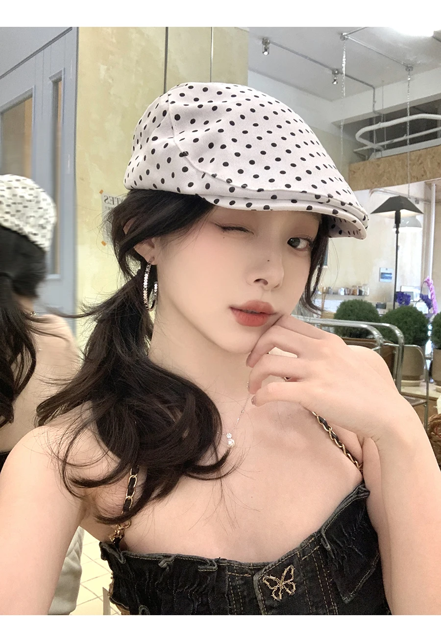 Ins New Retro Polka Dot Print Cappelli in avanti per le donne Primavera ed estate Gita Dolce Versatile Moda Y2K Berretti Cap Cofano