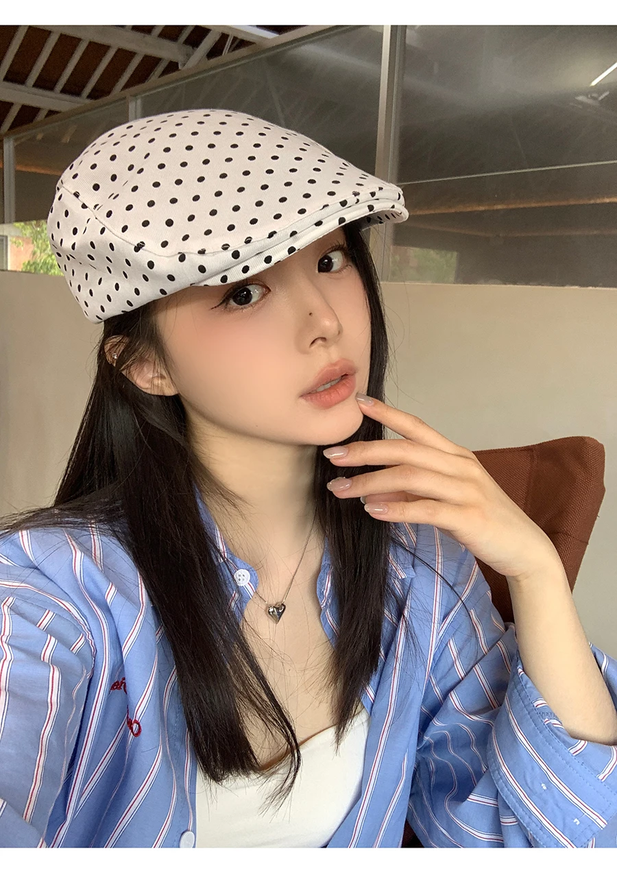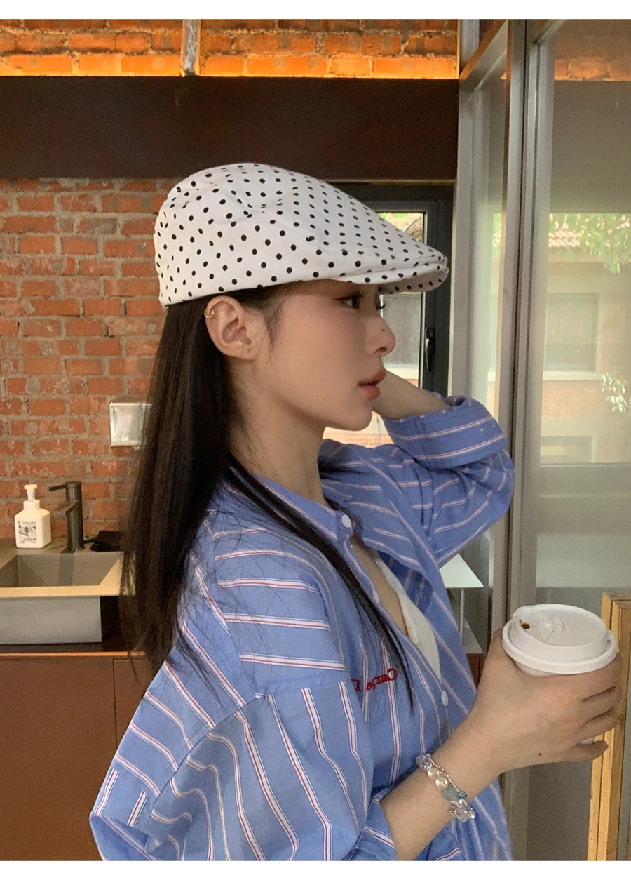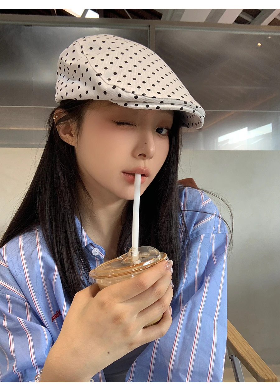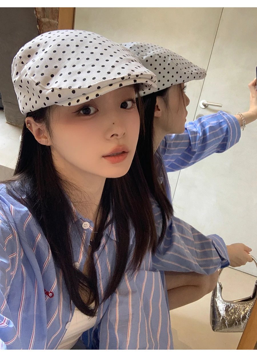 Ins New Retro Polka Dot Print Cappelli in avanti per le donne Primavera ed estate Gita Dolce Versatile Moda Y2K Berretti Cap Cofano